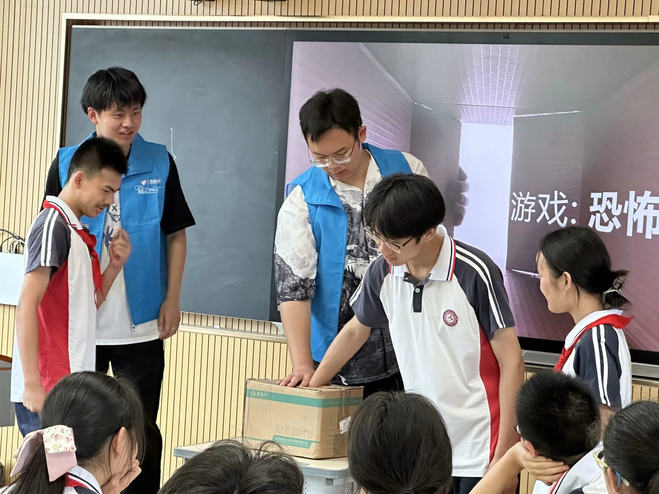 车谷融媒5月30日讯 5月28日,武汉经开区沌阳街道南湾社区联合武汉商学院食品科技学院青年志愿者协会走进开发区第四中学,开展“遇见彩虹?‘吃定’彩虹”--科技主题活动。通过实验教学,让青少年在实践中自主探索、自主学习,培养他们的学习兴趣和学习能力。