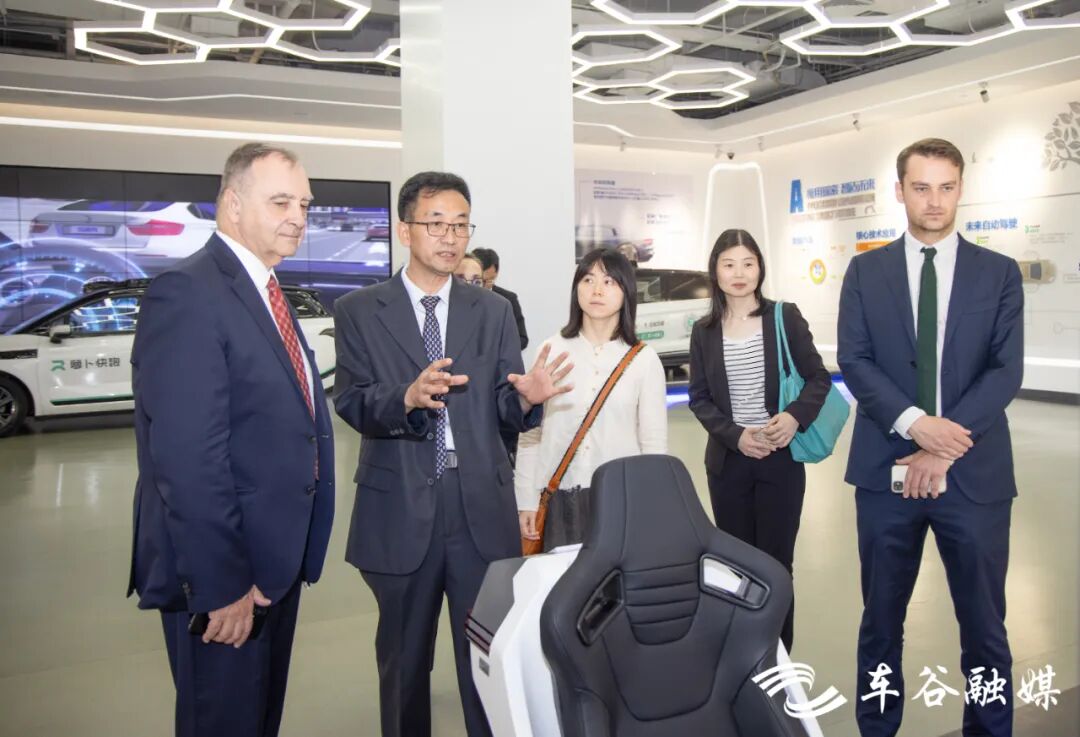 在“双智”展厅,胡建谊一行详细了解中国车谷三十年跨越发展历程、“二次创业”发展目标、空间布局等情况,现场观摩人工智能、物联网、车路协同等先进技术在汽车领域的应用演示。