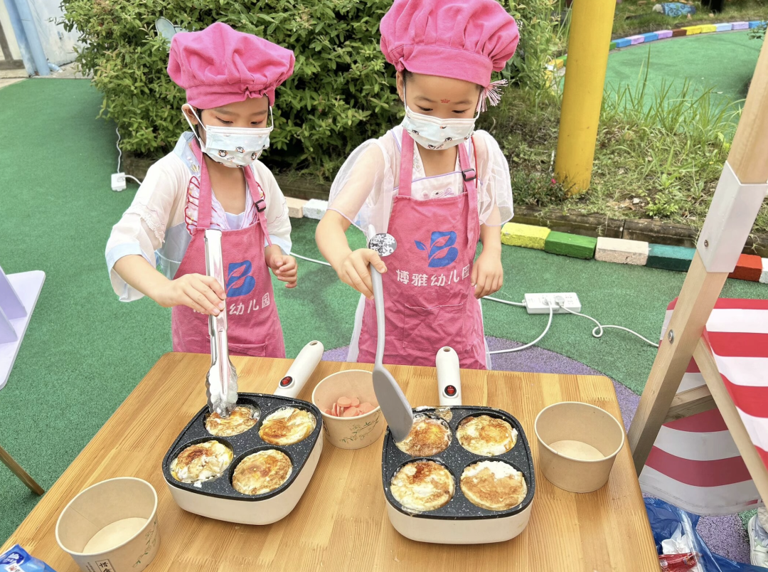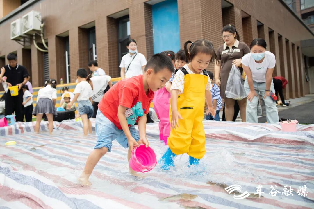 ▲美味的食物、铁皮青蛙、水枪大战,龙湖幼儿园举行田园野餐、夏日戏水、自然手作等系列活动。