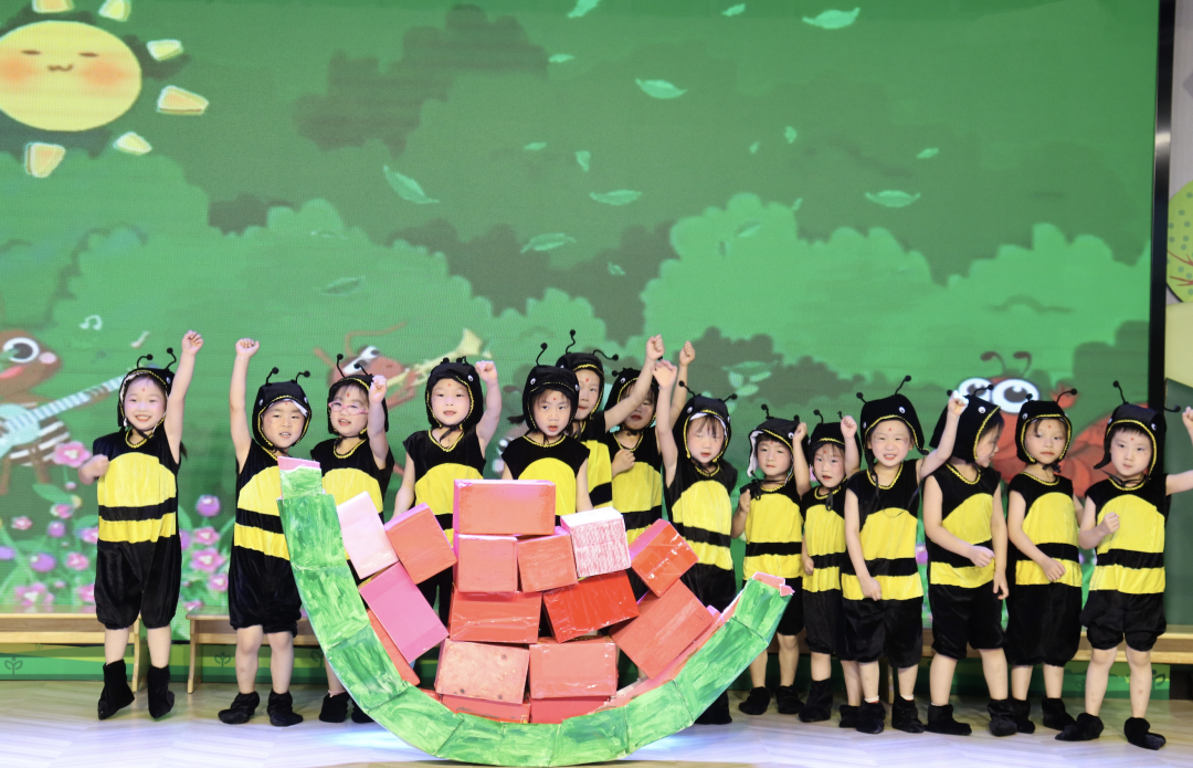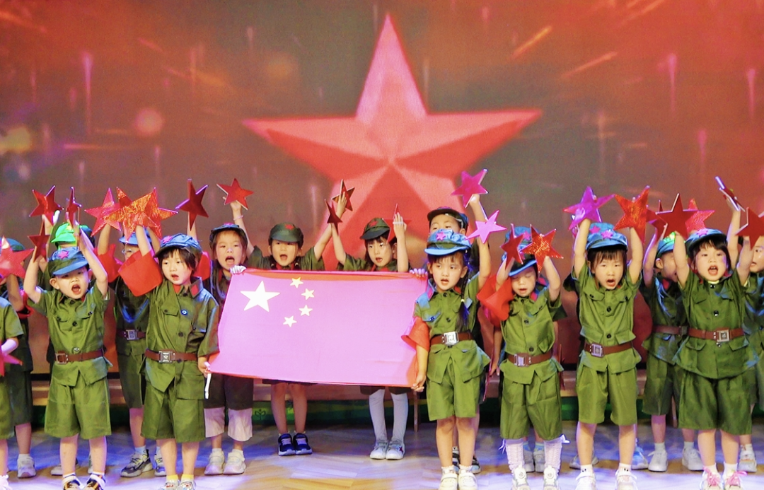 车谷育杰幼儿园举行了大型文艺汇演。红歌大合唱《闪闪的红星》、绘本剧表演《蚂蚁搬西瓜》、环保时装秀、歌舞节目《背上书包出发》……充满了童趣与活力。
