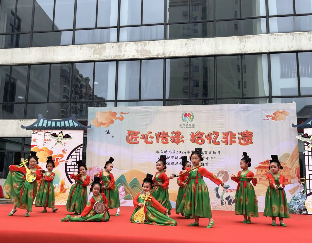 永久幼儿园举办了“匠心传承,拾亿非遗”的校园美育文化节活动。孩子们身着多姿多彩的传统服饰,载歌载舞体验非遗魅力。