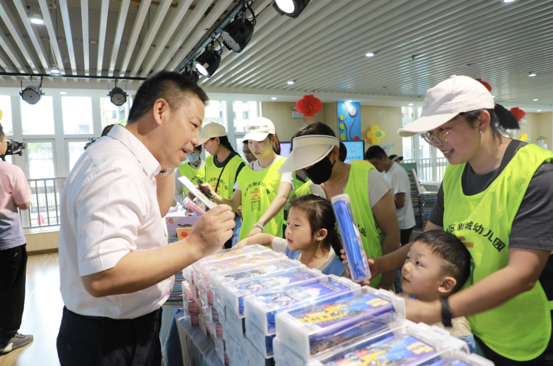 舞台上,家长们装扮成各种蔬菜,自导自演了情景剧《一团青菜成了精》,老师们化身绘本剧中的人物形象,让《神笔马良》《包公审石头》《老鼠嫁女》等小朋友们喜欢的剧目从绘本走进现实,孩子们捧腹大笑,乐在其中。