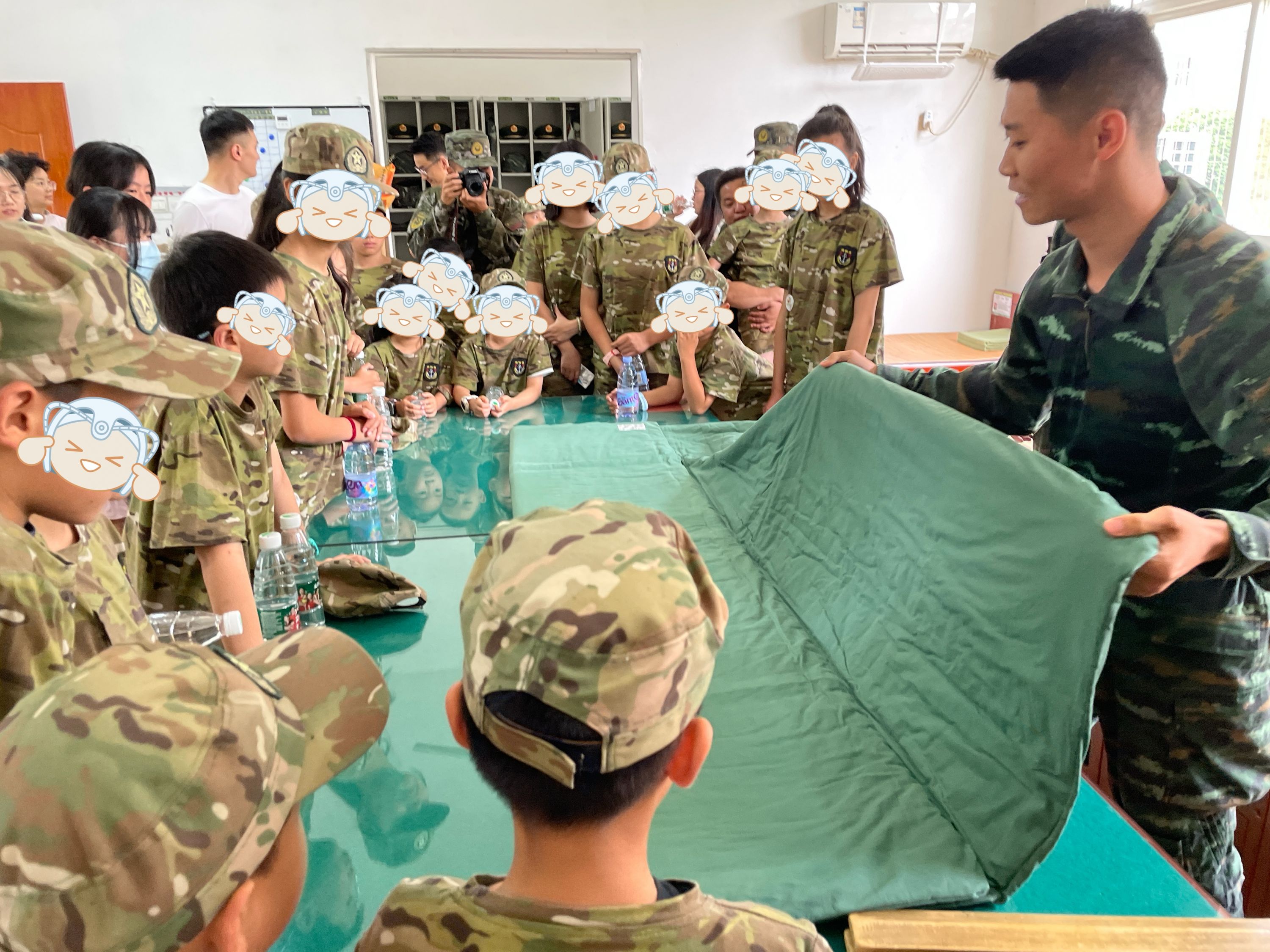 在讲解员的带领下,孩子们进入营区宿舍,了解武警战士的内务要求与规范。战士们的生活用品整齐摆放,一块块方正的“豆腐块”被子,让孩子们惊叹不已,真切感受到军人严谨的作风和自律的精神。“三分叠,七分整……”参训战士耐心讲解,孩子们跃跃欲试,一起把一床床被子变成一个个整齐的“豆腐块”。