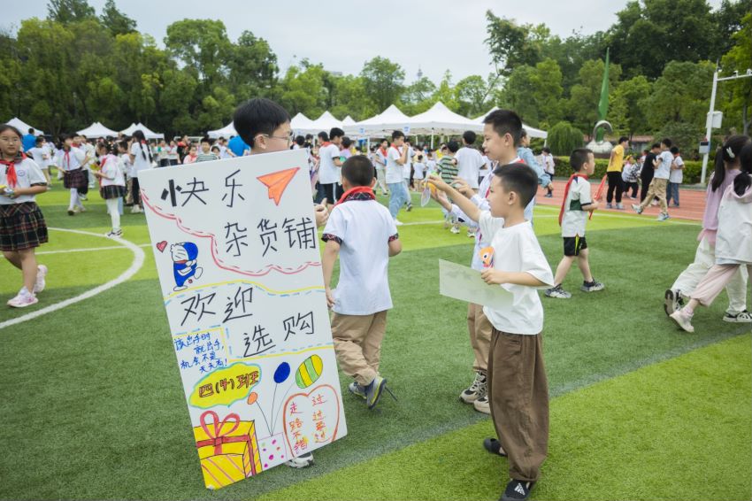 “学校提供展示的平台,创客市集怎么玩、玩什么,学生们说了算!”该校校长闵珍艳介绍道,每个班的店铺从筹备到开店,都由学生们自主创意,他们既是活动设计者,也是店铺经营者、产品推销员……要想在众多店铺中脱颖而出,每个学生都可以贡献智慧,为班级店铺出谋划策。