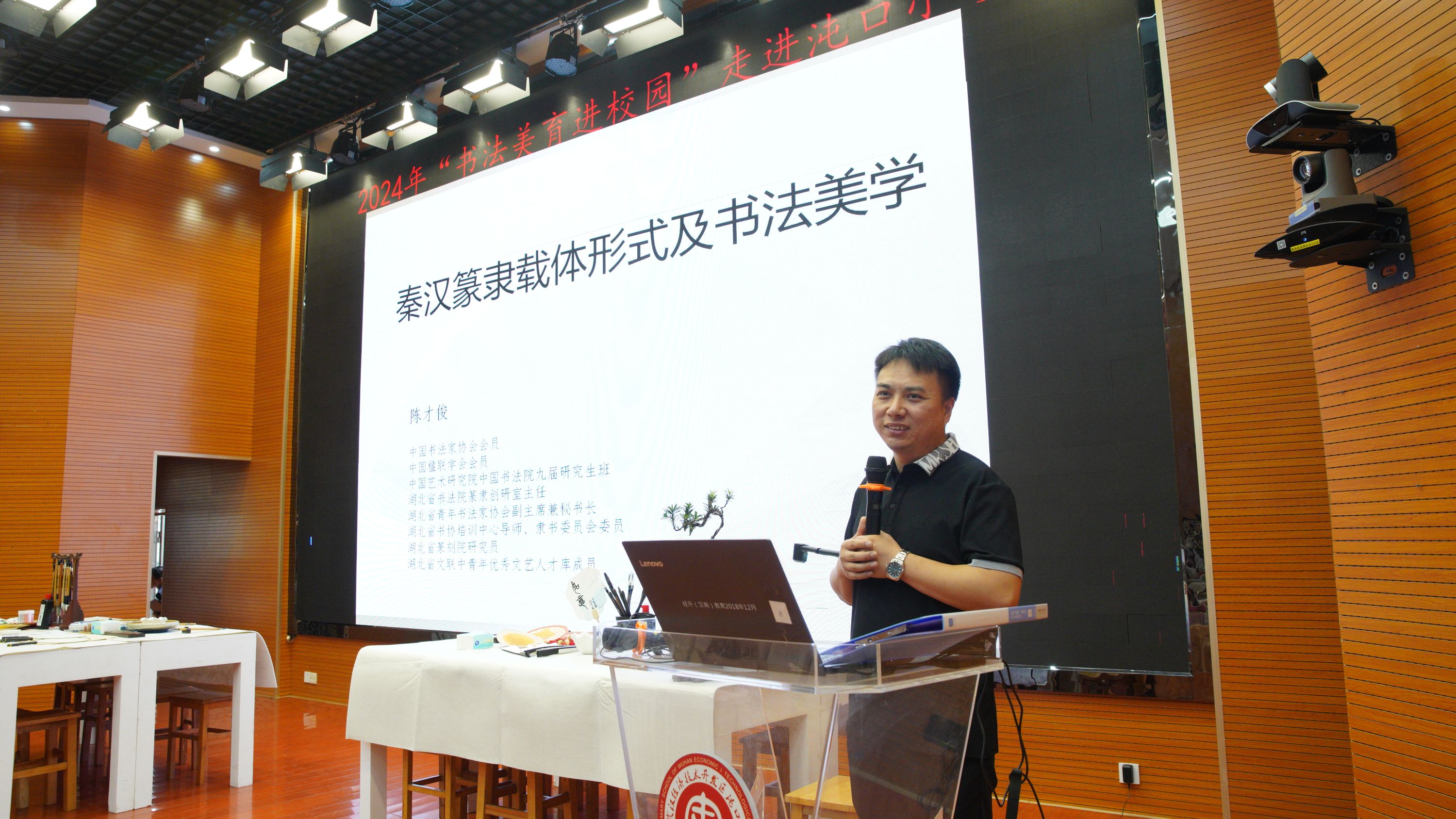 “书法是中国特有的用毛笔书写汉字的艺术。由于汉字的特殊性逐步形成了书法艺术。这个过程经过了几千年。”陈才俊聚焦书法形成的历史根源,从历史和科学的角度对书法艺术进行阐述,带领孩子们开启书法艺术之旅,感受书法文化的博大精深。