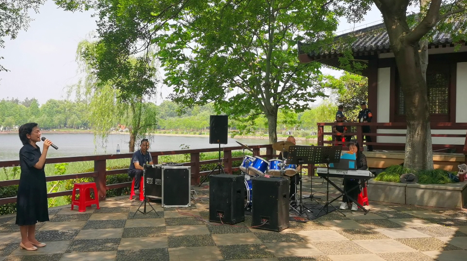 除此之外,公园内绣球花、荷花、石榴花、合欢、金丝桃、夹竹桃、大花金鸡菊、波斯菊、硫华菊等花开正盛,市民游客可身着汉服前去赏花游园,拍照打卡,畅游汤湖。
