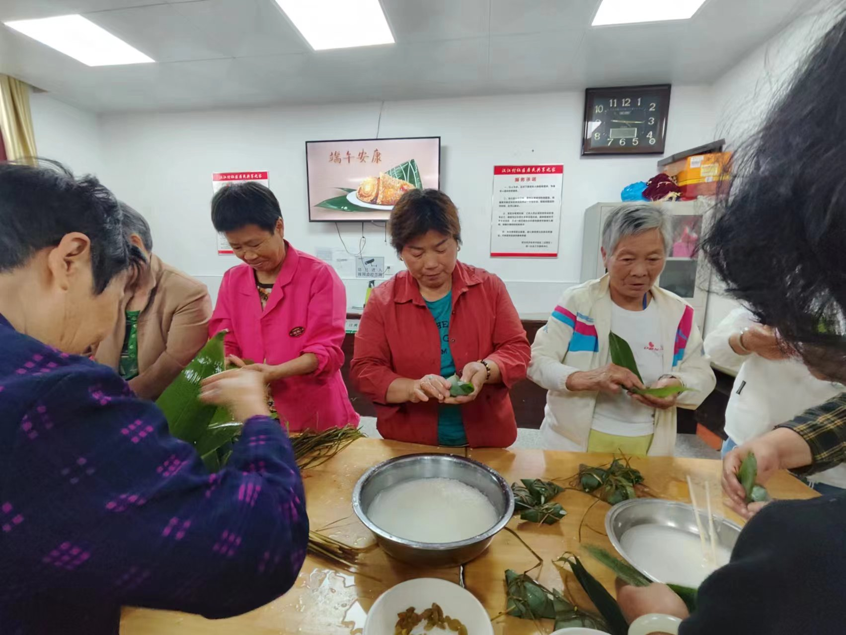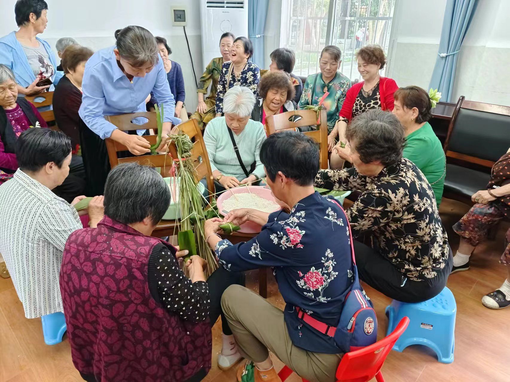 6月5日,湘口街道汉江村居家养老服务中心联合村“两委”开展“老有所乐·‘粽’在参与”的端午节主题活动,邀请了60位村居老人体验民俗文化,共享安康端午。