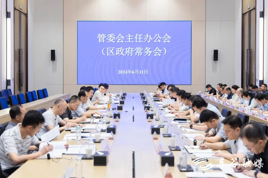 车谷融媒6月11日讯 6月11日,工委副书记、管委会主任唐超主持召开管委会主任办公会,学习贯彻习近平总书记近期重要讲话、重要指示精神,研究我区贯彻落实措施;传达学习市政府关于106次常务会议重点督办事项的会议精神,部署有关重点工作。