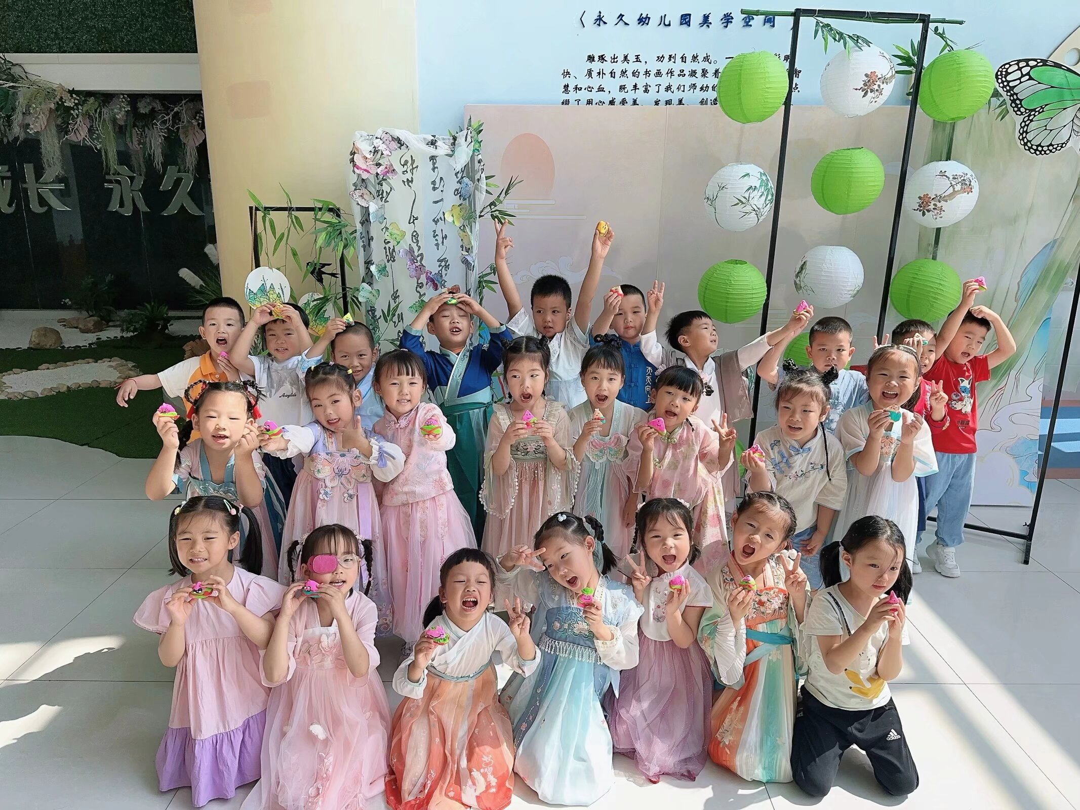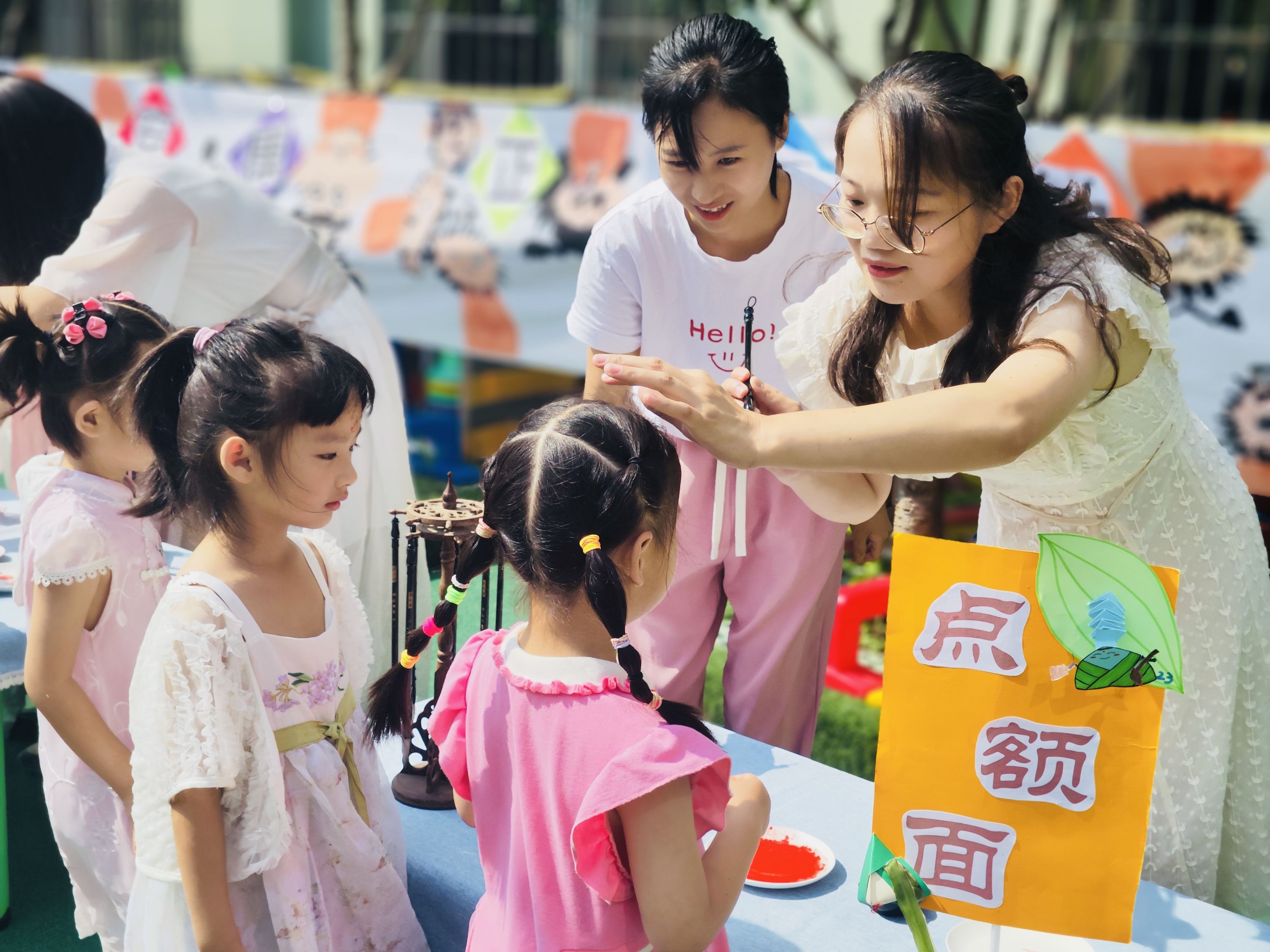 博睿幼儿园、小军山幼儿园、永久幼儿园、车谷育智幼儿园、新城幼儿园的同学们则通过巧手绘端午,体验水球大战、套粽子、射五毒,编织五彩绳、制香包、插艾草,玩赛龙舟游戏等,沉浸式体验端午民俗文化。