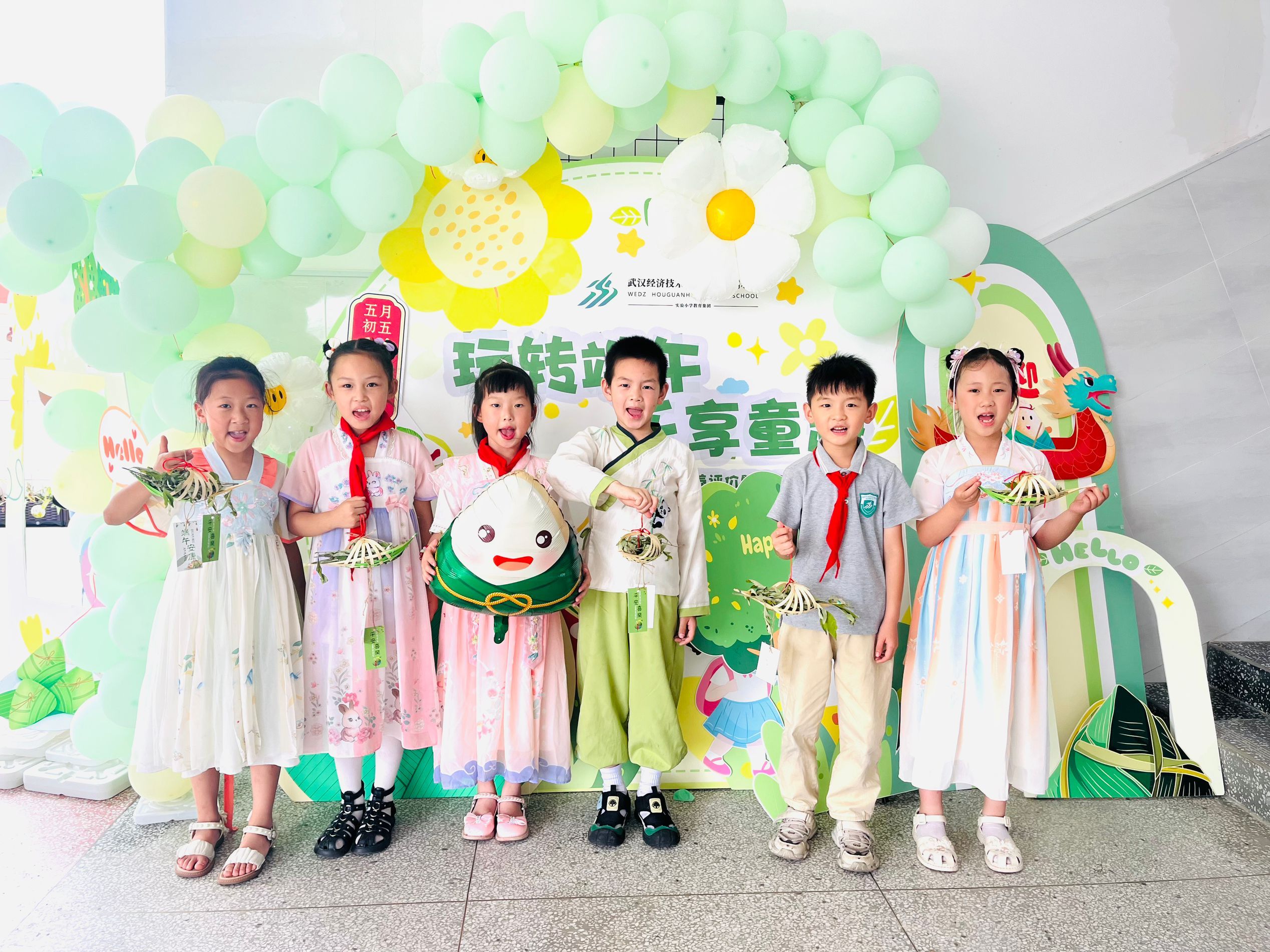 沌口小学为学生准备了端午“粽”礼,和食堂阿姨一起包粽子吃粽子,用艾草做成挂饰装扮校园,学生们沉浸在端午的节日氛围里。