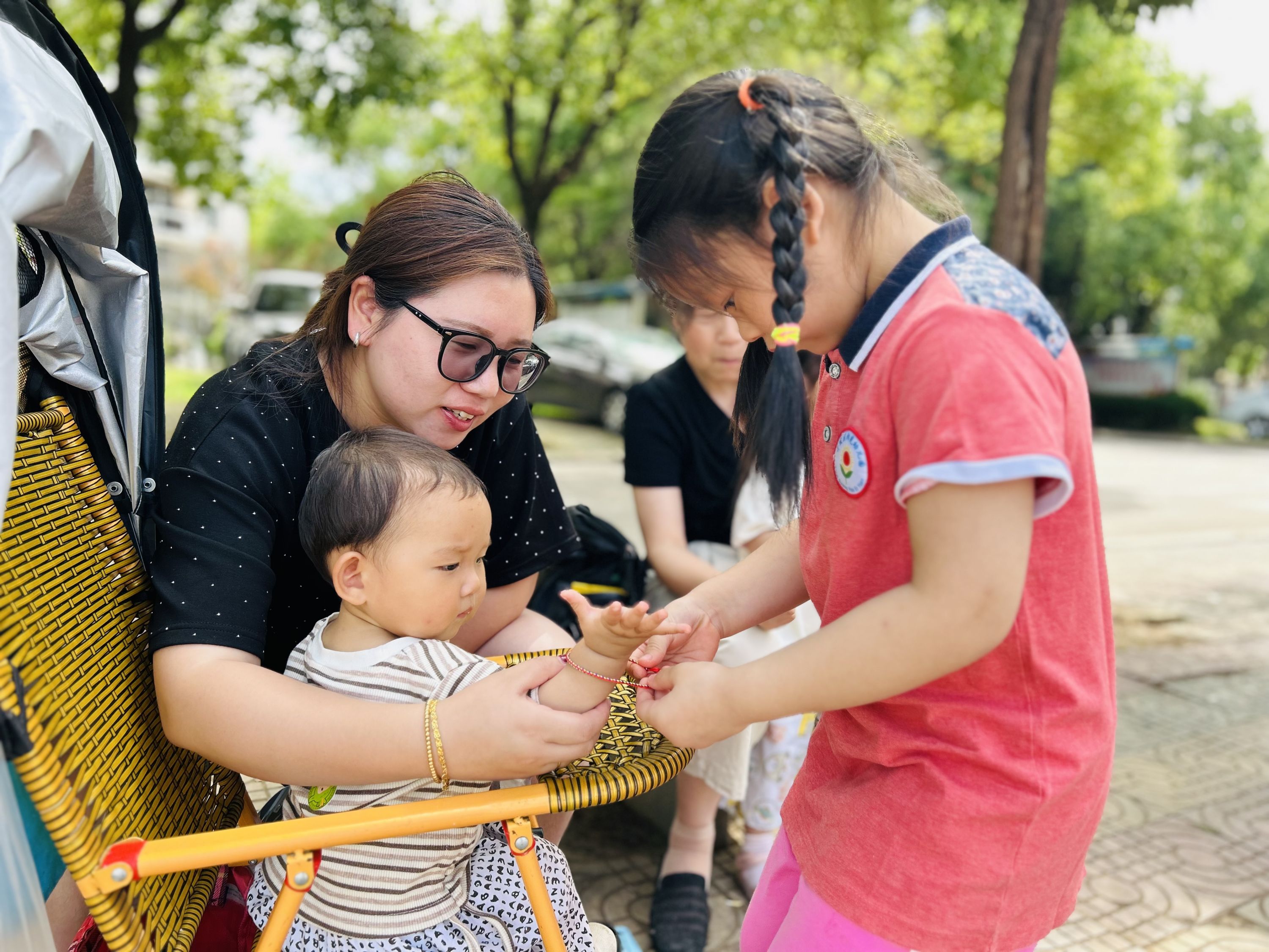 巧绘彩蛋、包粽子、编五彩绳、趣味投壶、赛龙舟……育才实验幼儿园、阳光幼儿园、红升幼儿园的学生们通过绘画、手工、游戏等形式体会传统节日的童趣。学生们还拿着自己编织好的五彩绳送给社区的小朋友,彩绳传递着学生们的美好祝福。