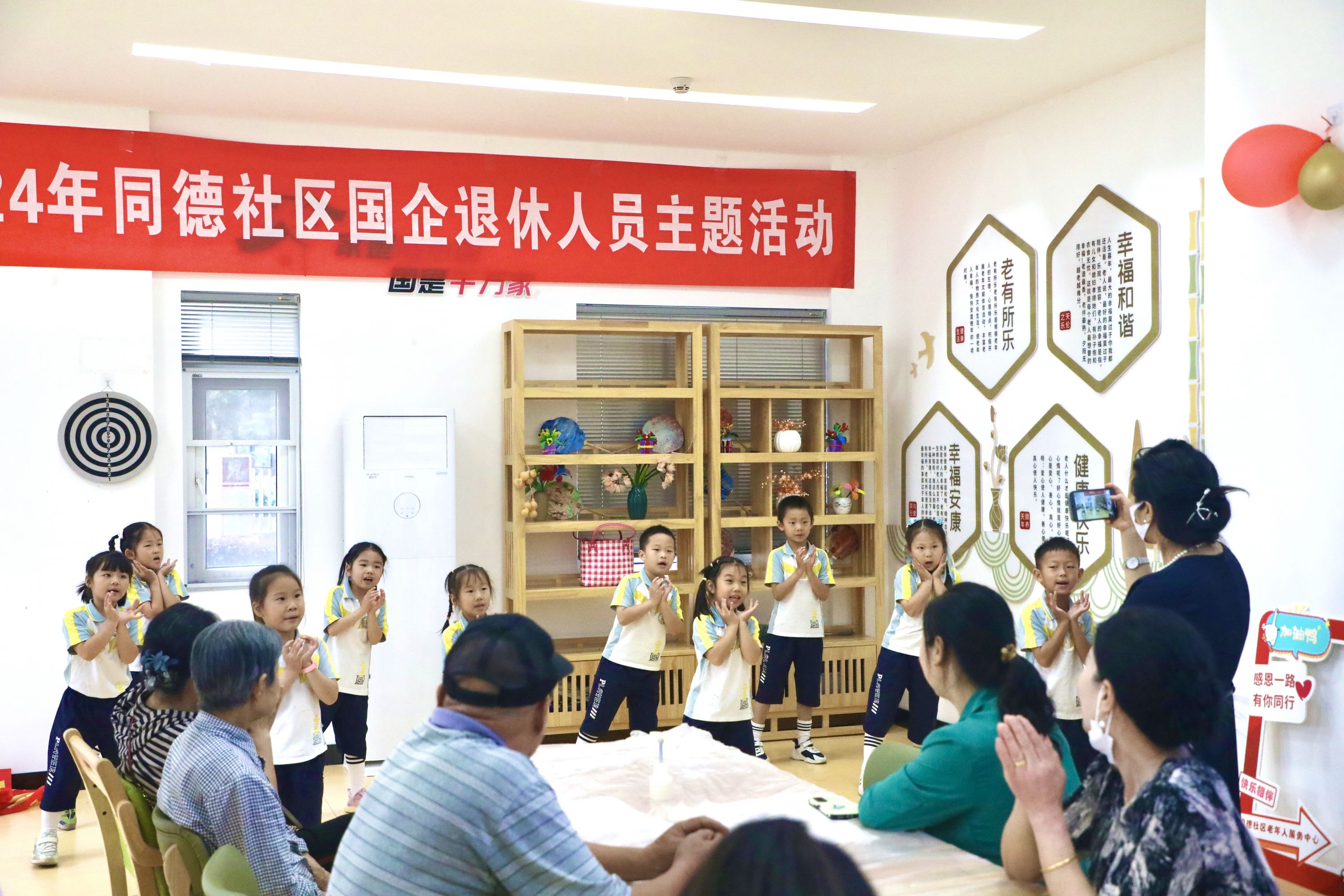 红江幼儿园的学生们走进同德社区老年活动中心开展端午节主题文化活动。活动现场,学生们为在场的30位老人带来了一场活力满满的节目表演。在传统糕点制作环节,老人带着学生们一起亲手制作绿豆糕。