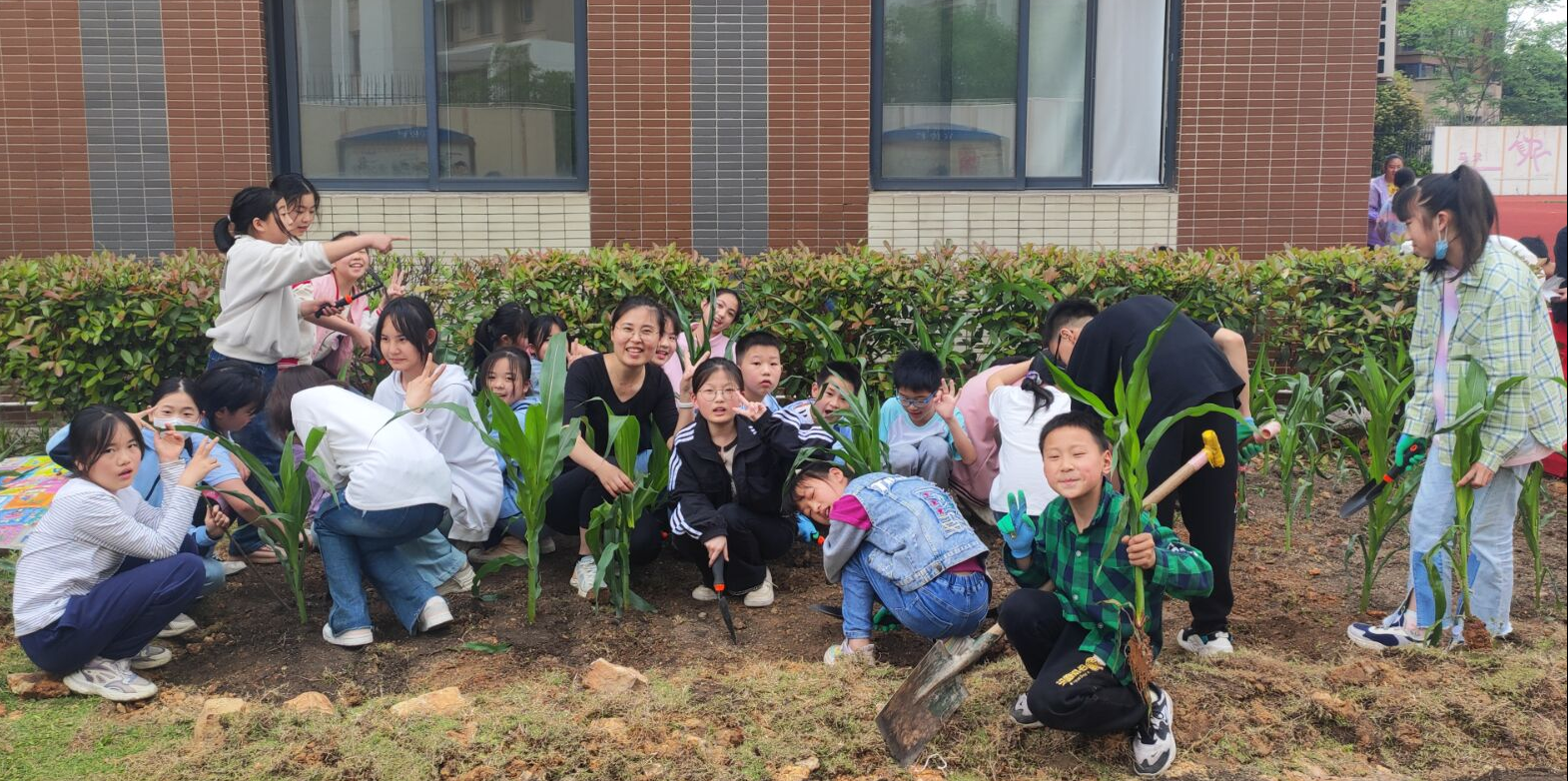 学校在食堂旁开辟一片玉米种植区,四五年级各学科老师积极参与到“玉”你相遇项目组,学生们在老师的指导下,亲手参与玉米的播种、浇水、施肥、除草等各个环节,亲身感受农业生产生活的艰辛与快乐。
