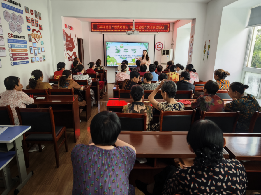 车谷融媒6月14日讯 6月6日,沌口街道万家湖社区新时代文明实践站联合炎黄创新居家养老服务站、一品行物业开展“香囊寄廉心 端午送温暖”文明实践活动。