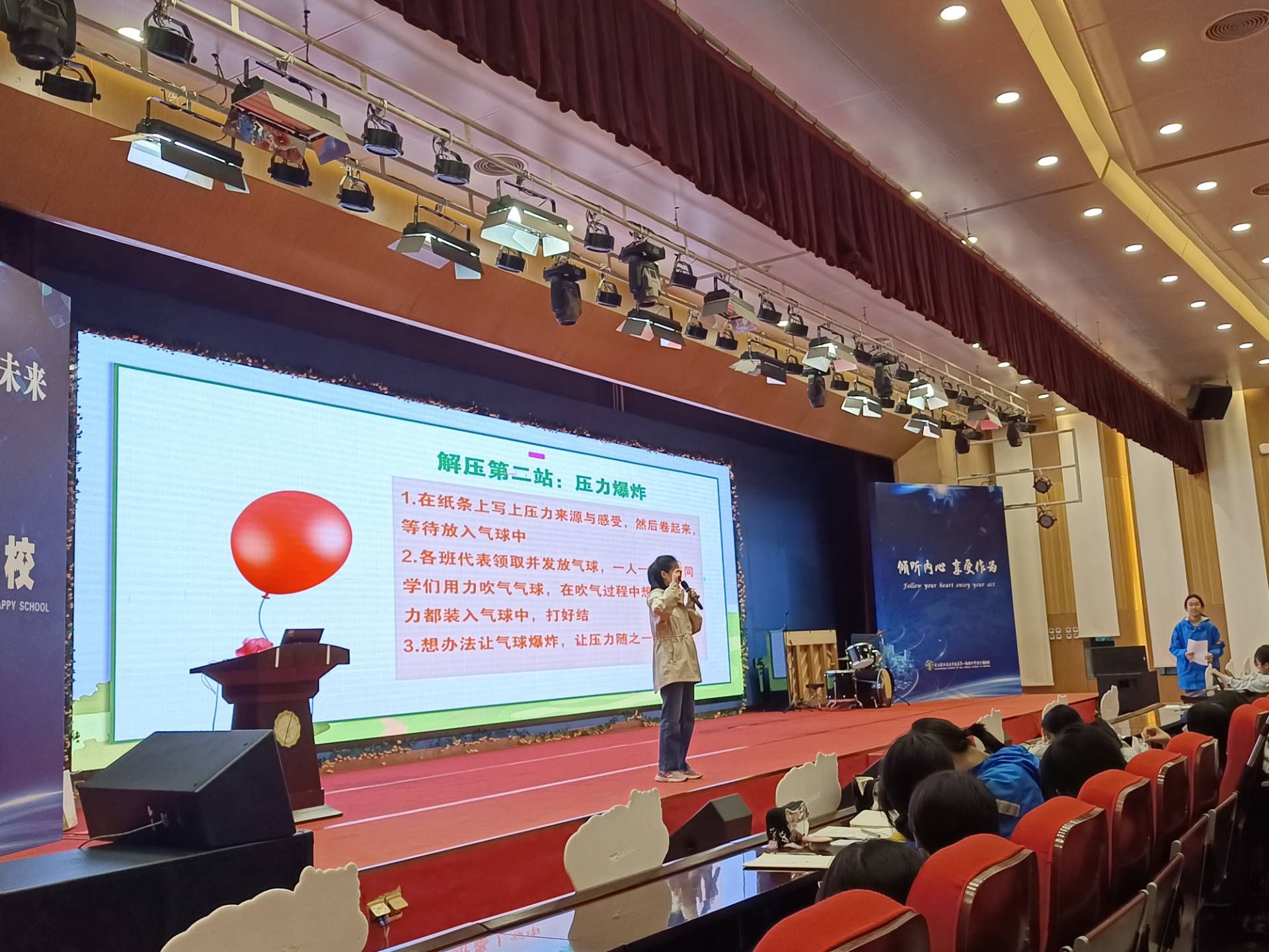 “大家在考前感受到一定程度的紧张是普遍正常的心理状态,紧张感会帮助我们集中注意力,在时间紧任务重的情况下更高效地完成任务。而焦虑主要表现为对糟糕结果的担忧,这是需要进行自我调节的。”官士墩中学心理教师邓碧对学生们介绍道。