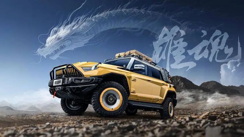 猛士917蛟龙战甲采用军工美学设计,车顶平台的防风罩借鉴了军车的迎弹面设计,全封闭旋翼锻造轮毂的灵感则来源于军车,而车身同色的车门防擦板更是巧妙地融入了枪械元素。标配沙漠风暴黄军事涂装,采用高亮漆工艺,尽显高级感。该车搭载增程版动力系统,最大马力816匹,在猛士智能越野架构M TECH技术加持下,具备全域机动的越野能力。