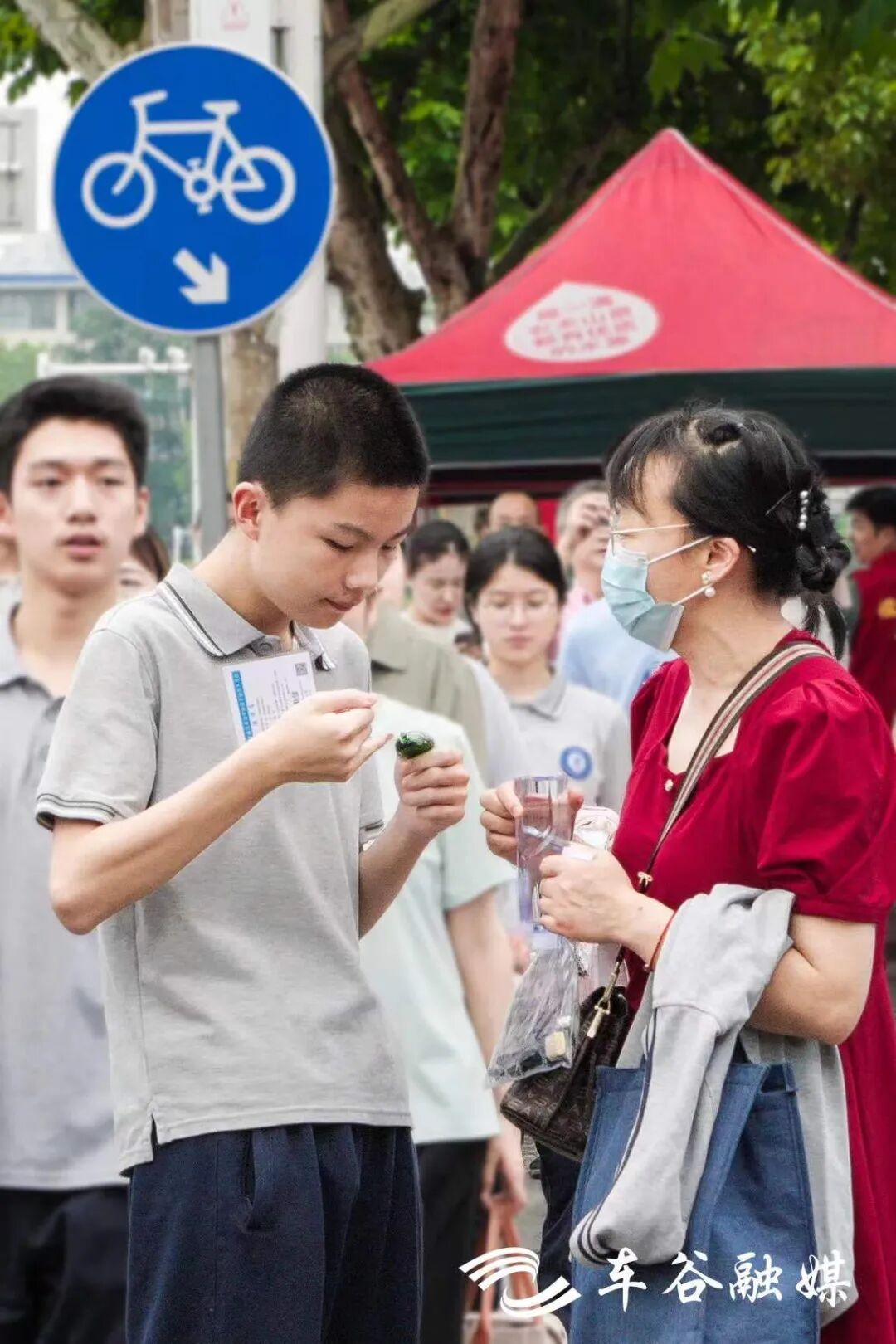 “江祁瀚同学,加油!爸爸在考场外为你助力!”武汉经开区汉阳三中考场外,军山街道综合执法中心执法人员江哲钱在护考时遇到了参加中考的儿子,“孩子在考场里面,完成的是一份中考的答卷;我在考场外面护考,完成的是给群众的满意答卷。”