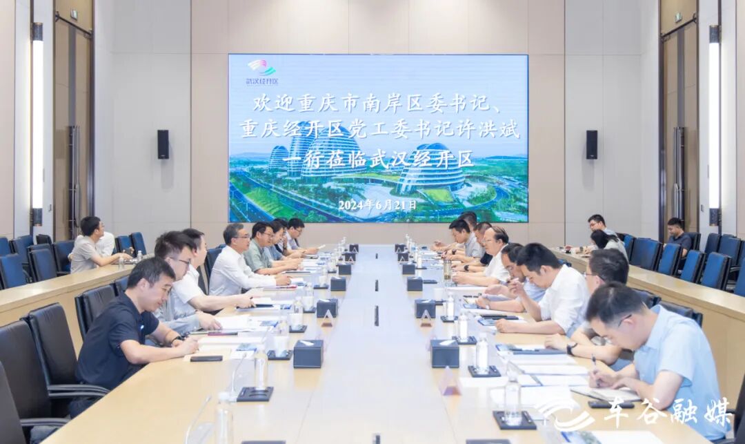 刘子清对许洪斌一行的到来表示欢迎。他说,武汉经开区与重庆经开区均为首批国家级开发区,面临着相似的机遇与挑战。重庆是一座充满活力与激情的城市,南岸区、重庆经开区在产业发展、科技创新等方面的好经验、好做法,值得武汉经开区认真学习。当前,武汉经开区突破性发展新能源与智能网联汽车、数字经济等战略产业和重点产业,全力打造“中国车谷”。希望双方进一步加强沟通交流,实现优势互补和创新合作,共同推动两地高质量发展。