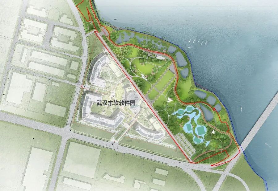 东软软件园临湖侧绿地公园,是武汉智能汽车软件园重点推进实施的环南太子湖绿化景观工程,该公园位于武汉经开区太子湖路和神龙大道交会处,北临南太子湖,占地16.32公顷,规划游人容量2583人。