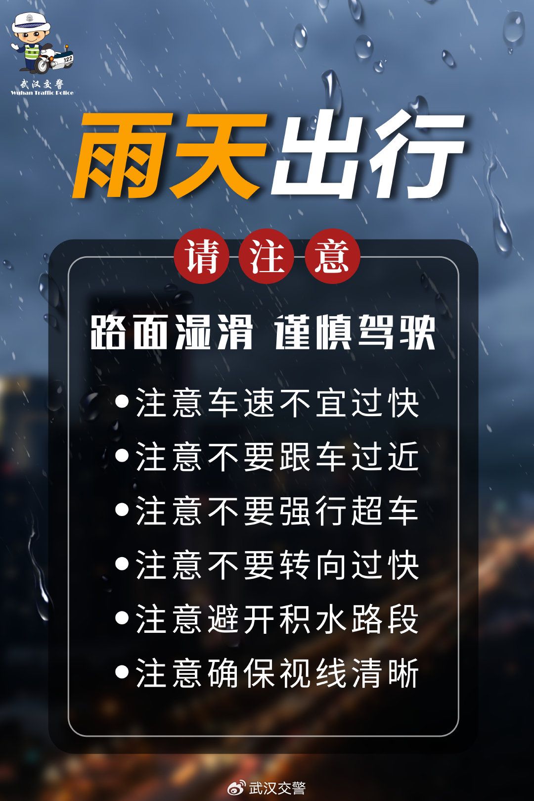 武汉公安交管部门会根据恶劣天气启动应急预案,加大对全市高架、桥梁、隧道、铁路涵洞、低洼路段等重点区域的巡查频次,同时增派机动巡逻岗位,随时掌握全市道路交通状况;同时武汉交警将利用广播、电视、网络平台等全媒体渠道,发布交通安全预警提示,及时发布道路通行信息、临时管控措施和绕行线路,引导市民合理出行,全力保障道路通行安全有序。
