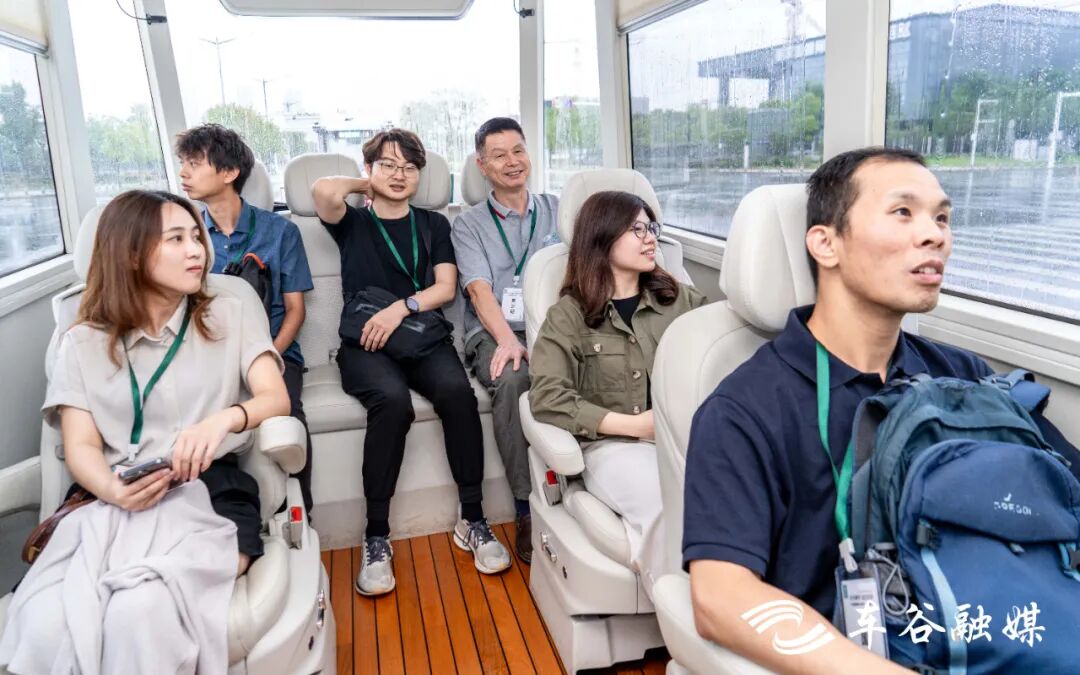 在武汉经开区“双智”展厅,博士团详细了解中国车谷三十年跨越发展历程、“二次创业”发展目标、空间布局等情况,试乘岚图FREE、梦想家,猛士917,路特斯ELETRE,体验东风无人小巴。