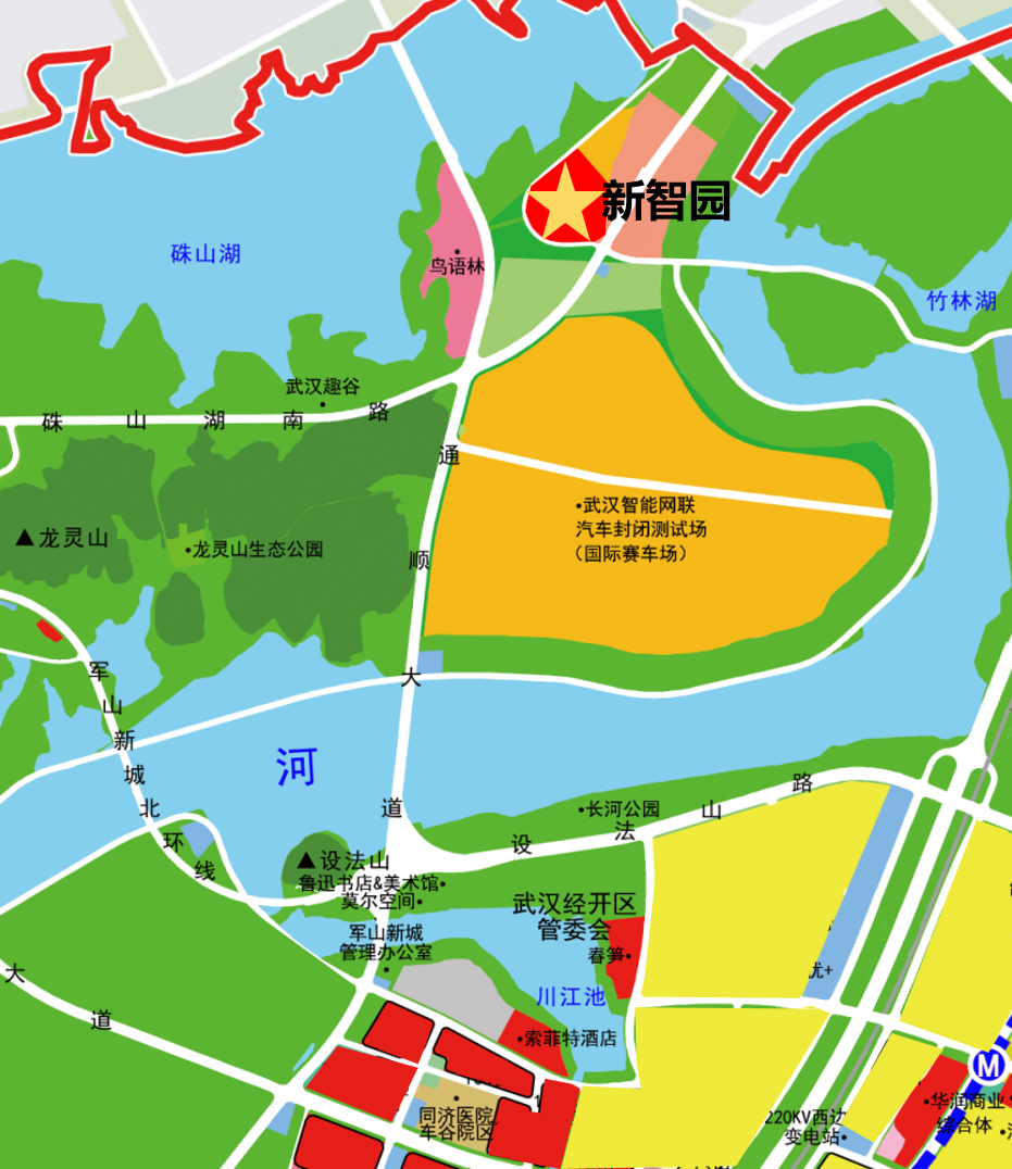 新智园是武汉经开区“双智”建设战略的核心支柱,国家智能网联汽车(武汉)测试示范区关键枢纽。园区集研发、展示、运营功能于一体,致力于为智能网联汽车封闭测试场及相关产业链提供全方位服务,引领技术进步和产业创新的新浪潮。园区东南侧紧邻智能网联汽车封闭测试场,该测试场是国内领先的智能网联汽车测试场,也是全球唯一一个T5级测试场与F2级赛道相结合的封闭测试场。
