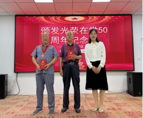 演出开始前,社区举行了“光荣在党50年”纪念章颁发仪式,社区党委书记为2名老党员颁发纪念章,向老党员们50年来对党的忠诚与坚守致敬。老党员代表张涛同志表示:“作为一名老党员,我的成长进步来源于党,生命中的一切都来源于党,纪念章是党中央对广大党员的关怀,是我们党员的荣誉感、归属感、使命感。”