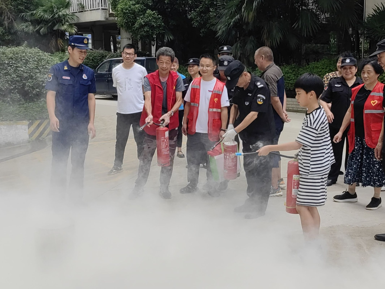 随后,消防大队宣讲员就消防栓的使用步骤进行现场培训,广大居民和物业工作人员以及社区志愿者积极上前实践操作,拿起灭火器干脆利落地扑灭了大火。实操演练完毕后,社区组织物业工作人员和居民开展了疏散逃生演练,大家一手扶着栏杆,一手用衣物捂住口鼻,依次低姿从消防通道跑出来。