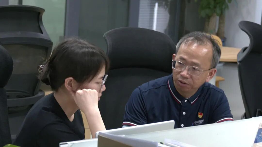 ▲任学锋(右)和同事交流工作