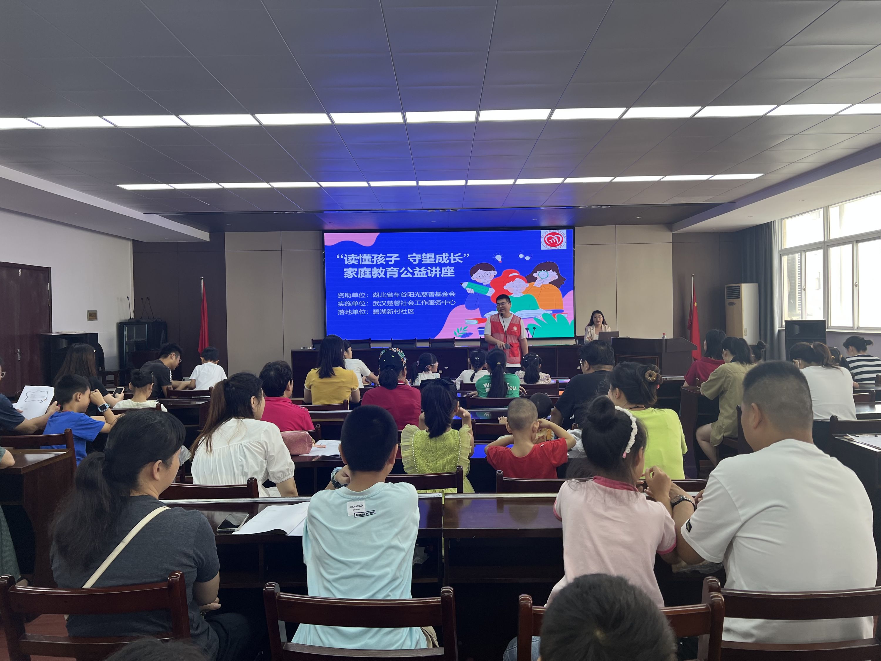 车谷融媒7月3日讯 6月30日,武汉经开区沌阳街道碧湖新村社区联合湖北省车谷阳光慈善基金会、武汉楚馨社会工作服务中心,开展家庭教育专题讲座,吸引近百人参与学习。