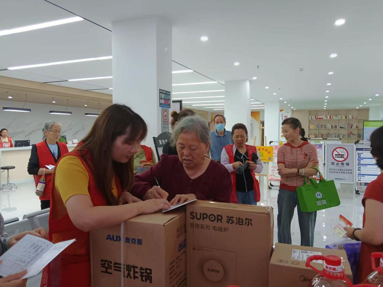 活动现场,社区工作人员向志愿者们宣读了《志愿服务积分兑换管理制度》,现场公示了志愿者上半年的服务时长及积分,同时也回顾了上半年社区志愿者参与社区志愿服务活动的精彩瞬间。积分兑换展示区展示了卷纸、大米、食用油、空气炸锅等日常生活用品,志愿者们根据自己的积分和实际所需挑选着心仪的礼品。