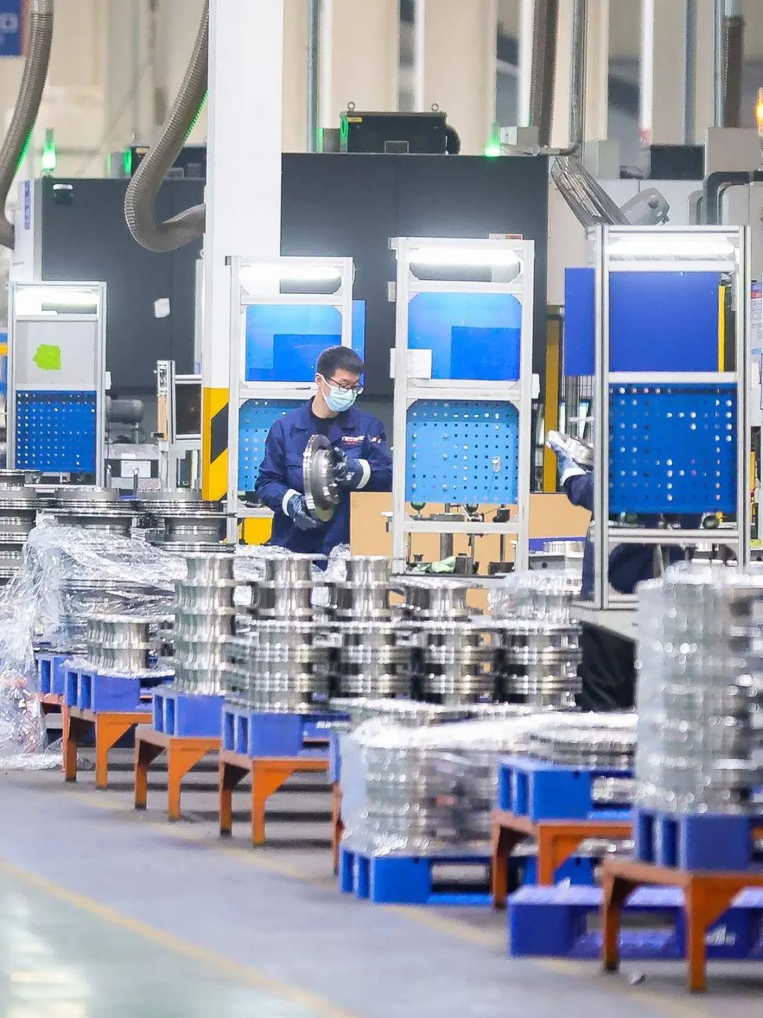 ▲2024年1月18日,摩擦一号制动科技(仙桃)有限公司新落成的三号工厂,工人在产线旁忙碌,生产刹车盘。(湖北日报全媒记者柯皓 通讯员潘登 吴晴霄 摄)