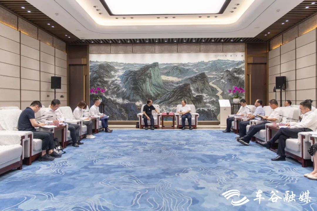 车谷融媒7月6日讯 7月6日,万科集团董事、总裁、首席执行官祝九胜一行到访武汉经开区。市委常委、武汉经开区工委书记刘子清,工委副书记、管委会主任唐超与祝九胜一行座谈交流,双方达成共识,将深化拓展合作,共促城市面貌更新、功能提升和民生改善,共谋高质量发展。