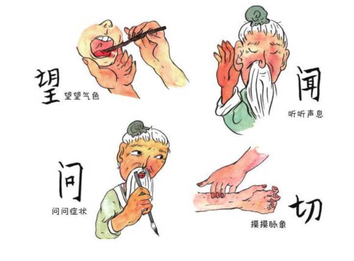 “望”即“看”。通过观察脸色、唇色、头发以及舌苔等,来推断病情、疾病。