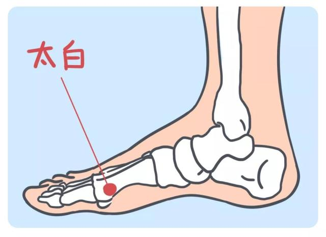 定位:正坐垂足或仰卧。在足大趾与足掌所构成的关节(第1跖趾关节)后下方掌背交界线处可触及一凹陷,按压有酸胀感,即为本穴。