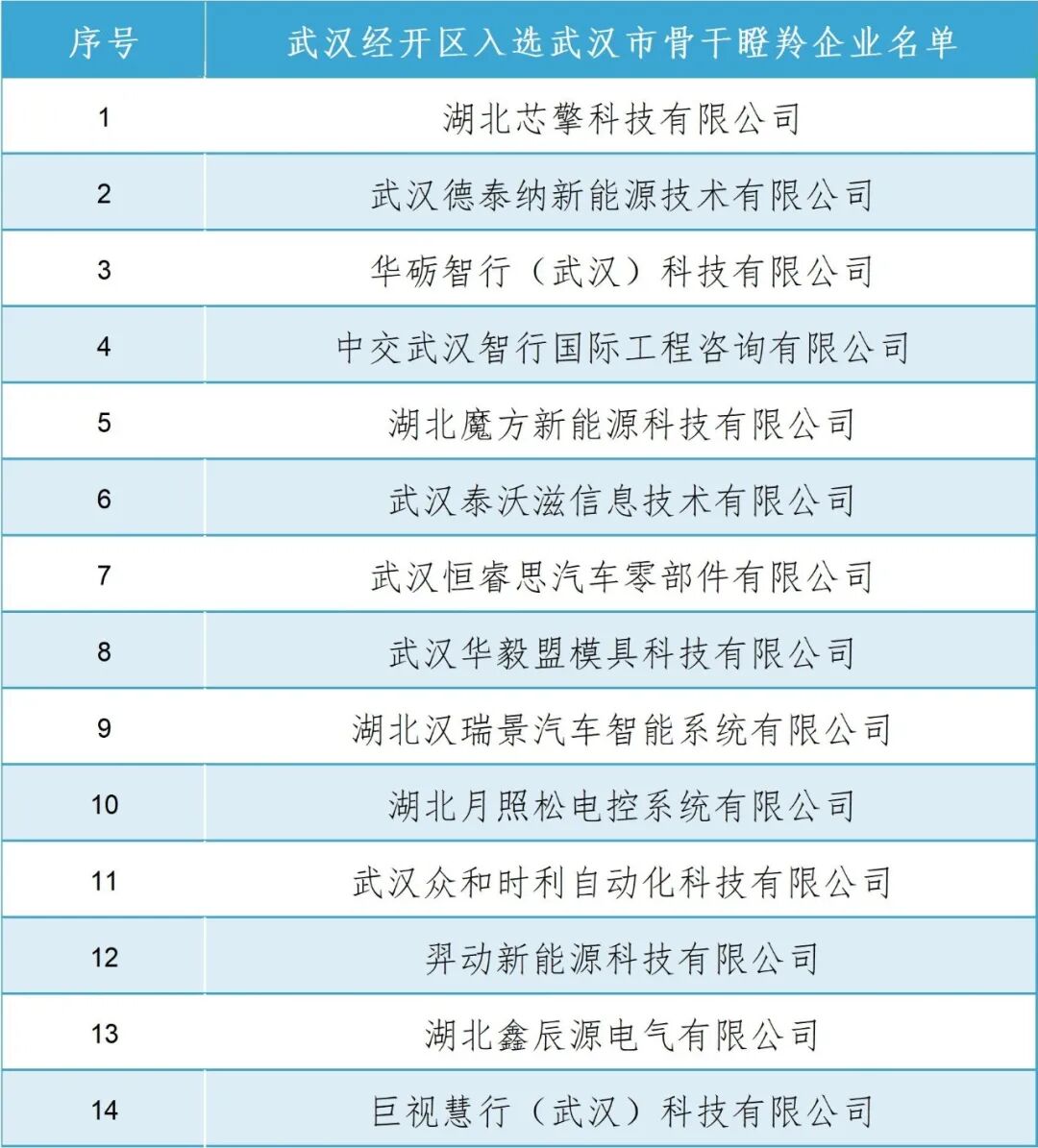 此次武汉经开区入选的14家“骨干瞪羚”企业,涵盖电子信息、新能源与节能、先进制造与自动化、新材料等新兴战略产业,“含新量”高、“含绿量”足,引领带动作用强。