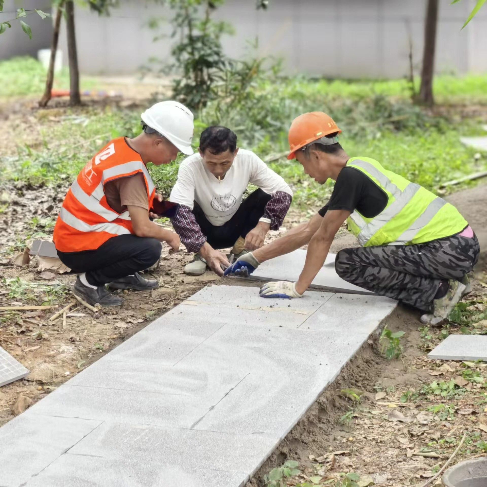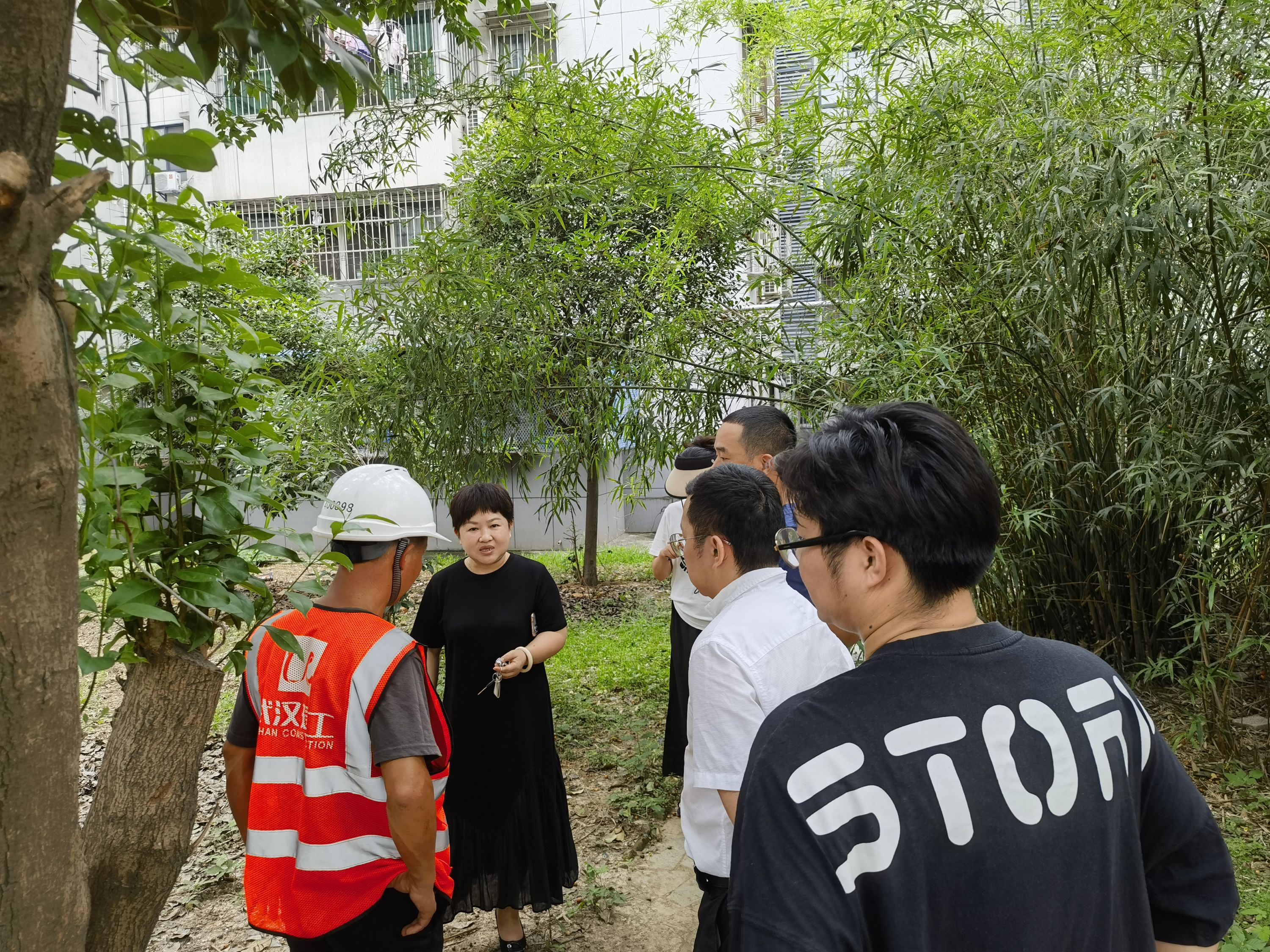 施工现场,小区业委会、物业公司、社区、武汉建工相关人员在施工现场再次确认了花园内植物的修剪、花园内石板路面的修复、公共区域用水排布等情况,结合具体情况进行了详细的施工交底说明。