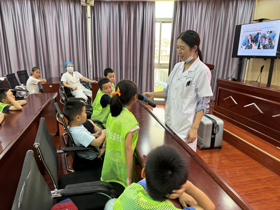 活动现场,社区卫生服务中心的专业医护人员通过图文并茂的PPT演示、生动有趣地讲解以及现场模拟演示等形式,向小朋友们详细介绍了溺水的危害、预防溺水的措施以及溺水后的正确自救与互救方法。