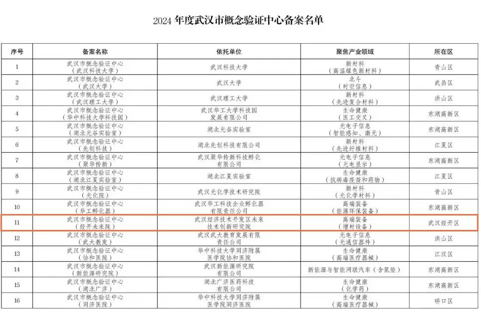 车谷融媒7月19日讯 日前,武汉首批16家概念验证中心完成公示获批备案,其中,武汉经开区未来技术创新研究院(以下简称“武汉经开区未来院”)成功入选,成为全市首批入选概念验证中心备案单位之一。