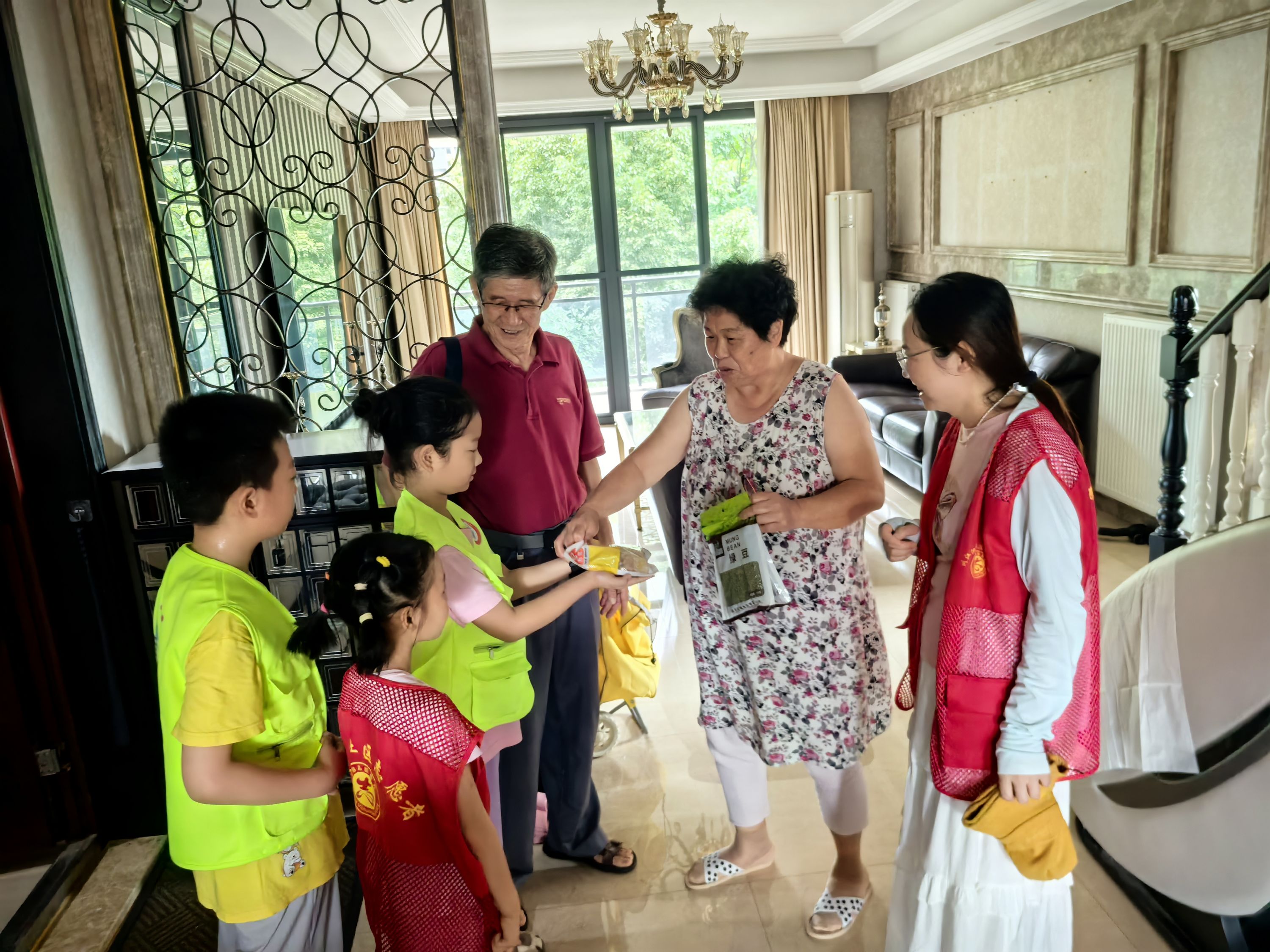 活动当天,社区工作人员、老年协会理事、萤火虫小小志愿者将准备好的绿豆、冰糖等降暑物品一一打包,分别送到社区独居老人的家中。志愿者们详细询问老人们的身体状况,为他们科普防暑降温知识,叮嘱老人们注意休息、饮食清淡、多喝温水,特别强调夏季用水用电安全,确保老人们安心度夏。