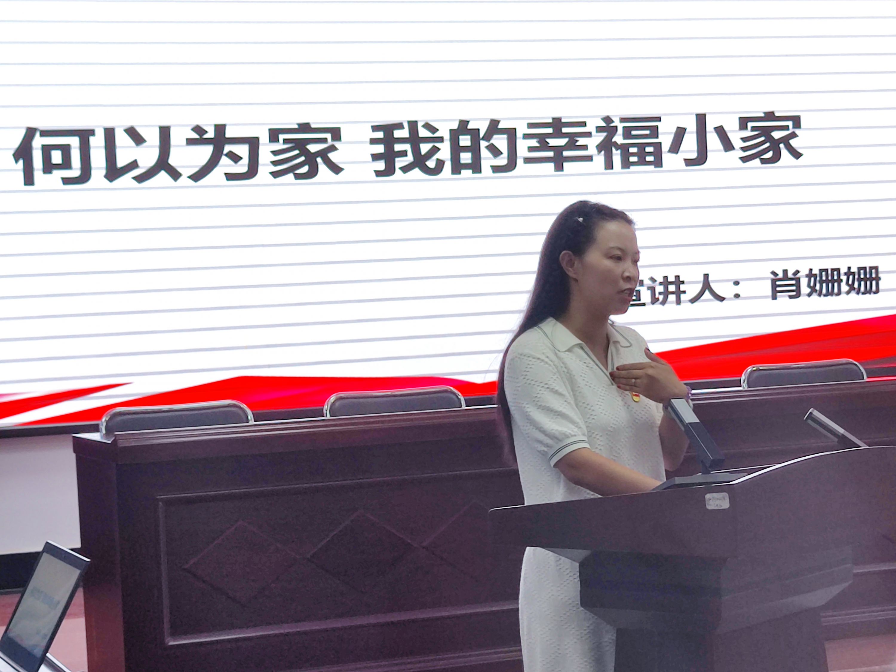 社区青年党员肖姗姗声情并茂地讲述了“幸福小家”的优良家风故事。肖姗姗将党性修养付诸行动,不仅经营好“小家”,还奉献于“大家”,与社区老党员陈国军一道,组建廖家堡社区“吾家”环保志愿服务队,积极策划组织新时代文明实践活动30余次,践行奉献、友爱、互助、进步的志愿精神。不仅如此,她的言传身教还影响到孩子和家人,每次公益活动,都有她“大手拉小手”的身影。