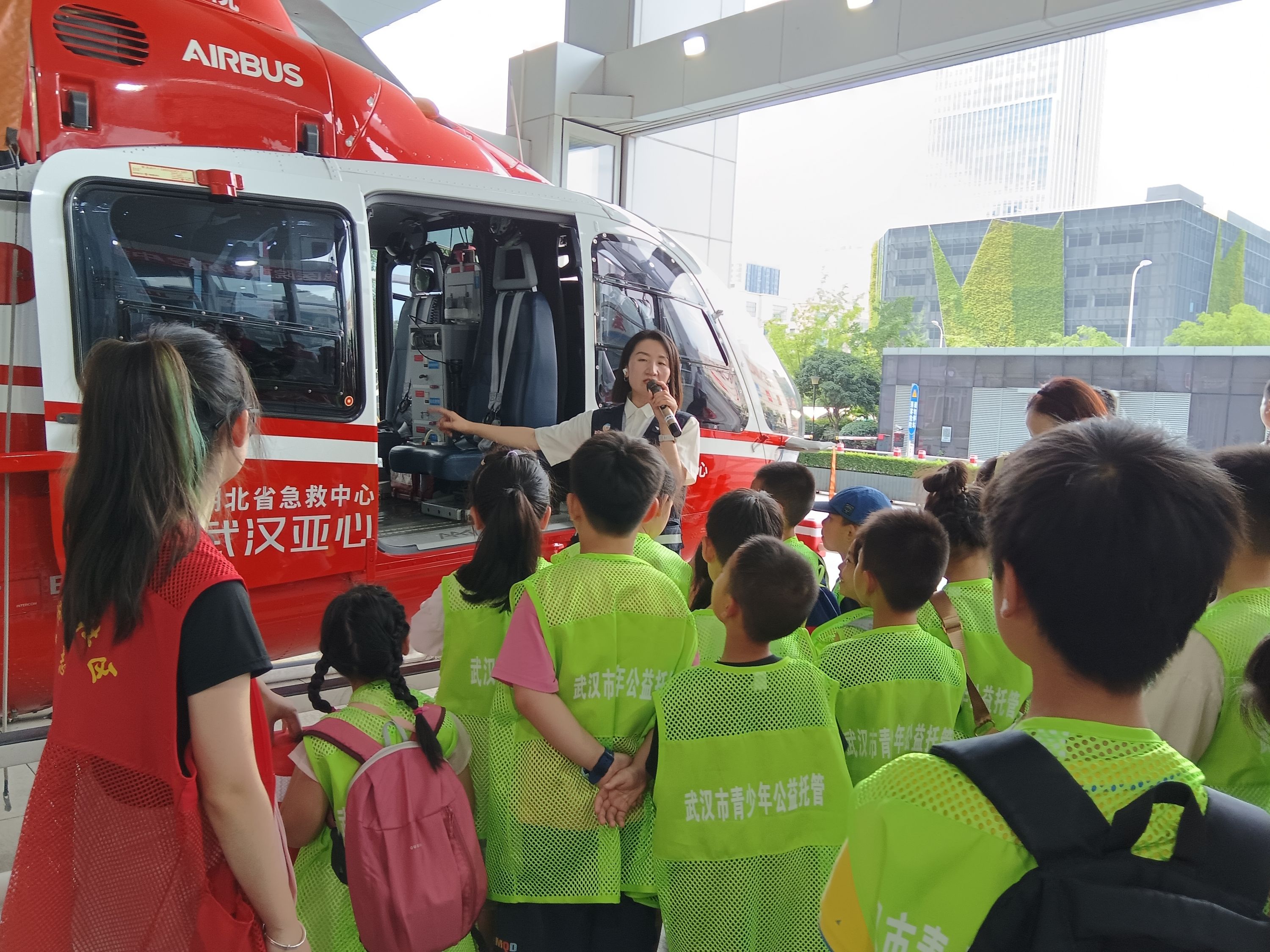 车谷融媒7月19日讯 7月16日下午,武汉经开区沌阳街道碧湖新村社区组织辖区青少年来到武汉亚心总医院,观摩空中救援直升机,参观“洞见生命——暑期疗愈艺术空间”,沉浸式体验生命的艺术之美。