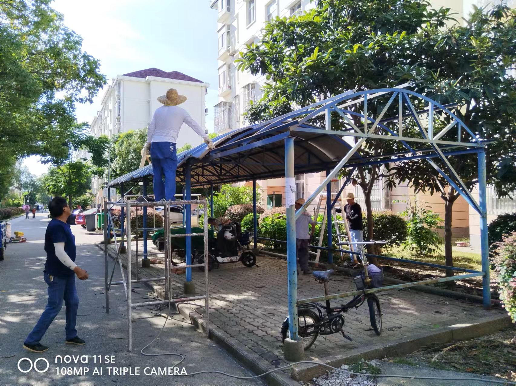 据了解,该地段废弃车棚因闲置许久未用,顶棚破损、堆放了不少杂物,不仅影响小区环境面貌,还存在一定的安全隐患。对此,社区党委充分利用“共同缔造”理念,通过召开议事协商会、开展民情走访等形式收集群众意见,结合大家密切关注的“停车难”问题,多次实地踏勘,最终决定拆除老旧车棚并修建停车场。