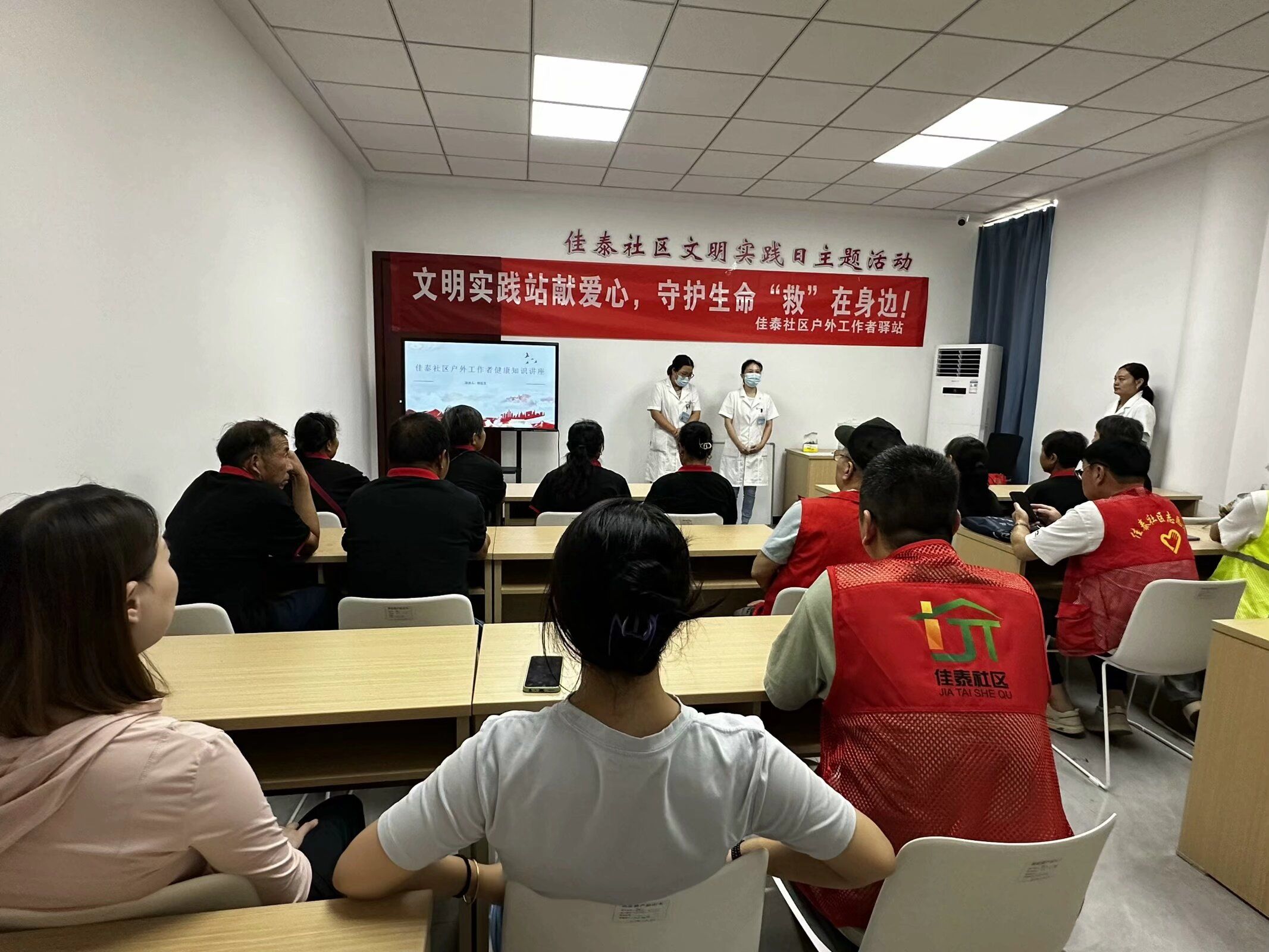车谷融媒7月19日讯 7月18日,一场以“守护生命 ‘救’在户外”为主题的应急救护培训活动在沌阳街道佳泰社区户外工作者驿站举行。30多位外卖小哥、快递员以及环卫工人等新就业群体参加培训,为自身应急救援能力“充电赋能”。