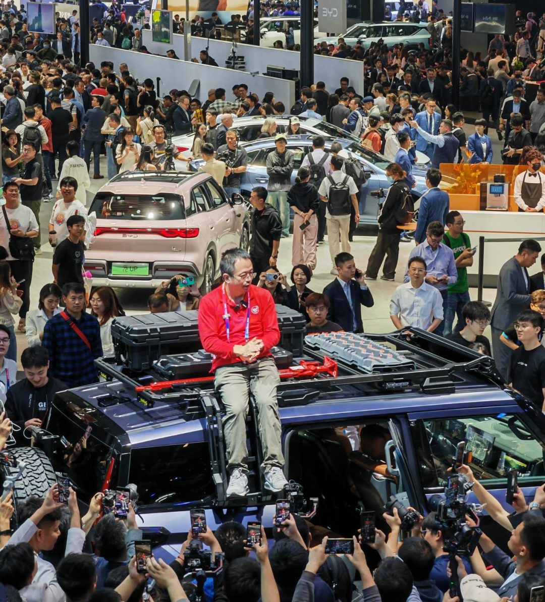 此前,“红衣大叔”周鸿祎早已和东风猛士科技结缘,在360总部楼下的看车直播中频频提及东风猛士917。2024北京国际车展上,周鸿祎“惊人一攀”登上东风猛士917高地雄狮的车顶平台,红衣“车模”火爆“出圈”。