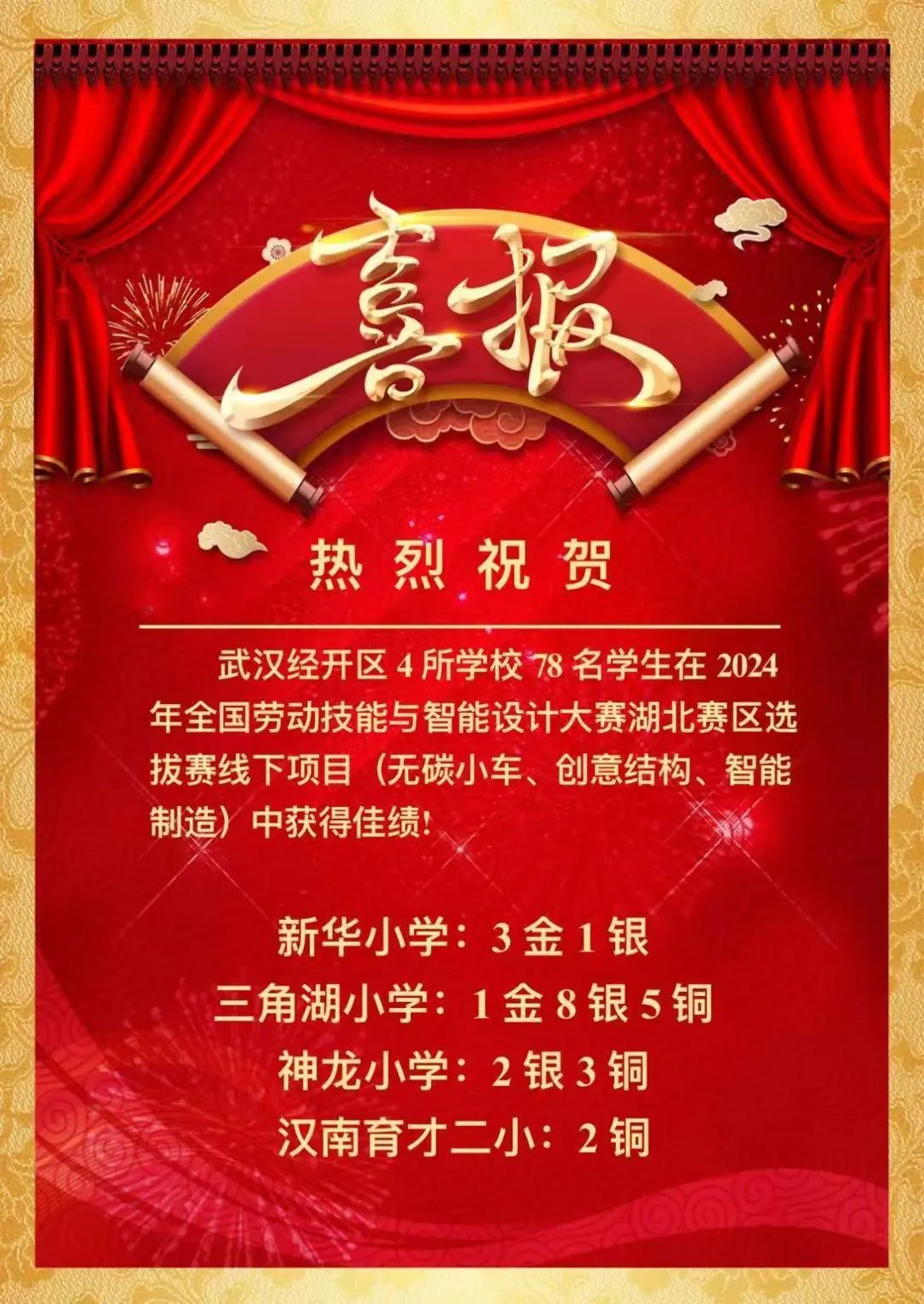 在武汉经开区获奖的26支队伍中,有全场年龄最小的“萌娃”,有参加两届比赛不断超越的“勇士”,有首次参赛一举夺金的“黑马”,有经过不懈努力在比赛中满分过关的“能手”。其中新华小学首次组建4支队伍参赛就取得了3金1银,创造了获奖率之最、含金量之最的闪耀成绩;三角湖小学获得1金8银5铜,刷新了历史最佳、获奖人数最多的骄人成绩。