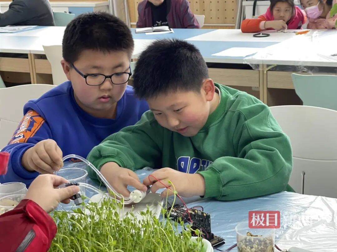 武汉经济技术开发区新华小学“梦想工坊队”内有两位热爱发明的“小魔法师”:六年级(8)班的敖瑾桐和六年级(1)班的王泽钰。他们的指导老师是匡仁政和戴世琪,在团队成员的努力下,手中的工具变成了“魔杖”,将一个个奇思妙想变成优秀的创新成果。目前,该团队已获两项实用新型专利。团队成员王泽钰设想智能水产养殖无人船,采用智能设备这一科技手段,利用远程遥控替人完成水产养殖任务,帮助养殖户降低工作风险。