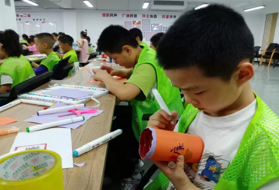 活动开始,“珠行万里”“手脚并用”垃圾分类小游戏点燃了孩子们的热情。在工作人员的引导下,孩子们纷纷拿出提前准备好的废弃塑料瓶,一剪一裁,转眼间花瓶的雏形初现。“小手画廉洁”,小朋友们手握画笔,以纯真的视角、独特的风格、缤纷的色彩勾勒出各具特色的廉洁主题绘画作品。有的画出“出淤泥而不染,濯清涟而不妖”的高洁,有的让“廉”与鸟儿共舞,有的讲述着刚正不阿的清廉典故……最后,孩子们将自己的绘画作品贴在花瓶上,一个个廉意满满的花瓶“诞生”了。