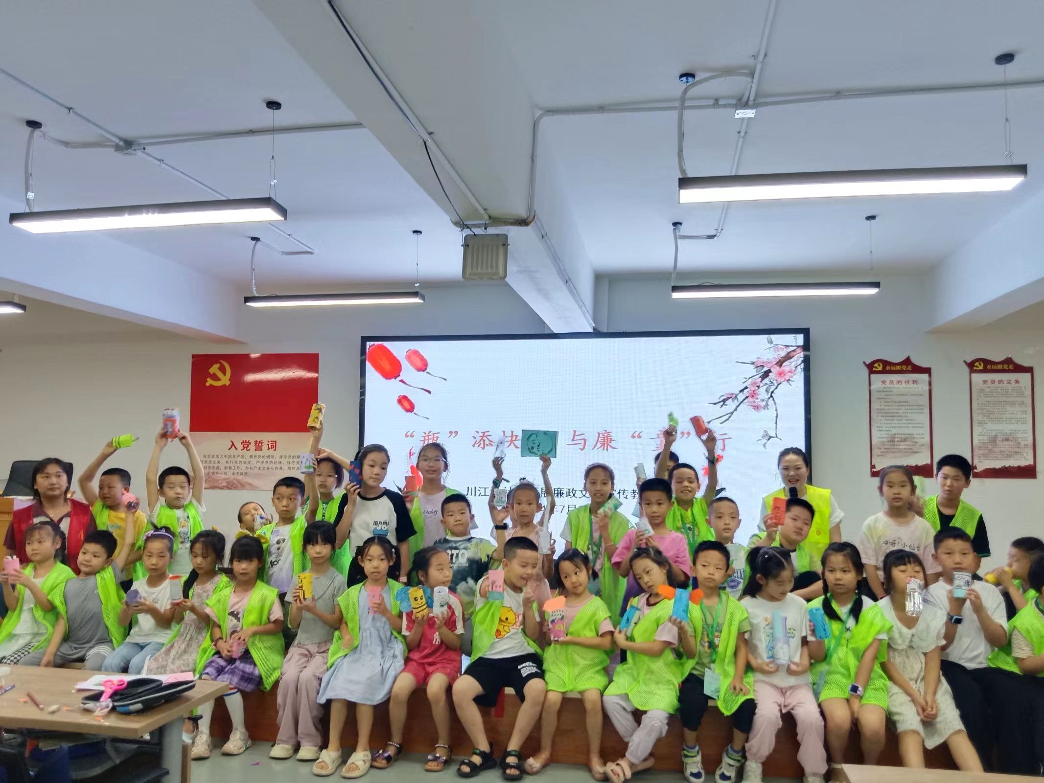 车谷融媒7月23日讯 7月22日上午,军山街道川江池社区联合街道垃圾分类工作小组,开展“‘瓶’添快乐 与廉‘童'行”廉政文化宣传教育活动,社区暑假托管班40余名学生踊跃参与。