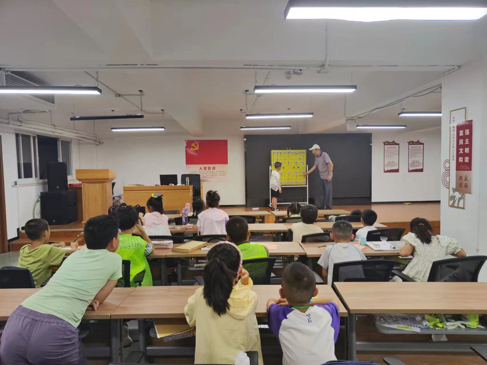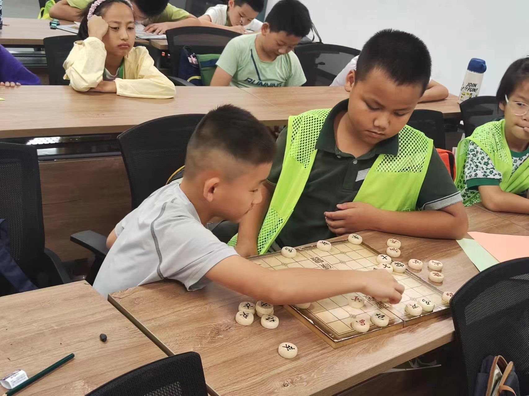 车谷融媒7月23日讯 近日,军山街道川江池社区联合春秋棋社为川江池社区暑托班开展了一节象棋公益课,特别邀请了棋社的专业棋手王华正老师为青少年儿童授课,培养青少年儿童良好的兴趣爱好,丰富青少年儿童暑期生活。